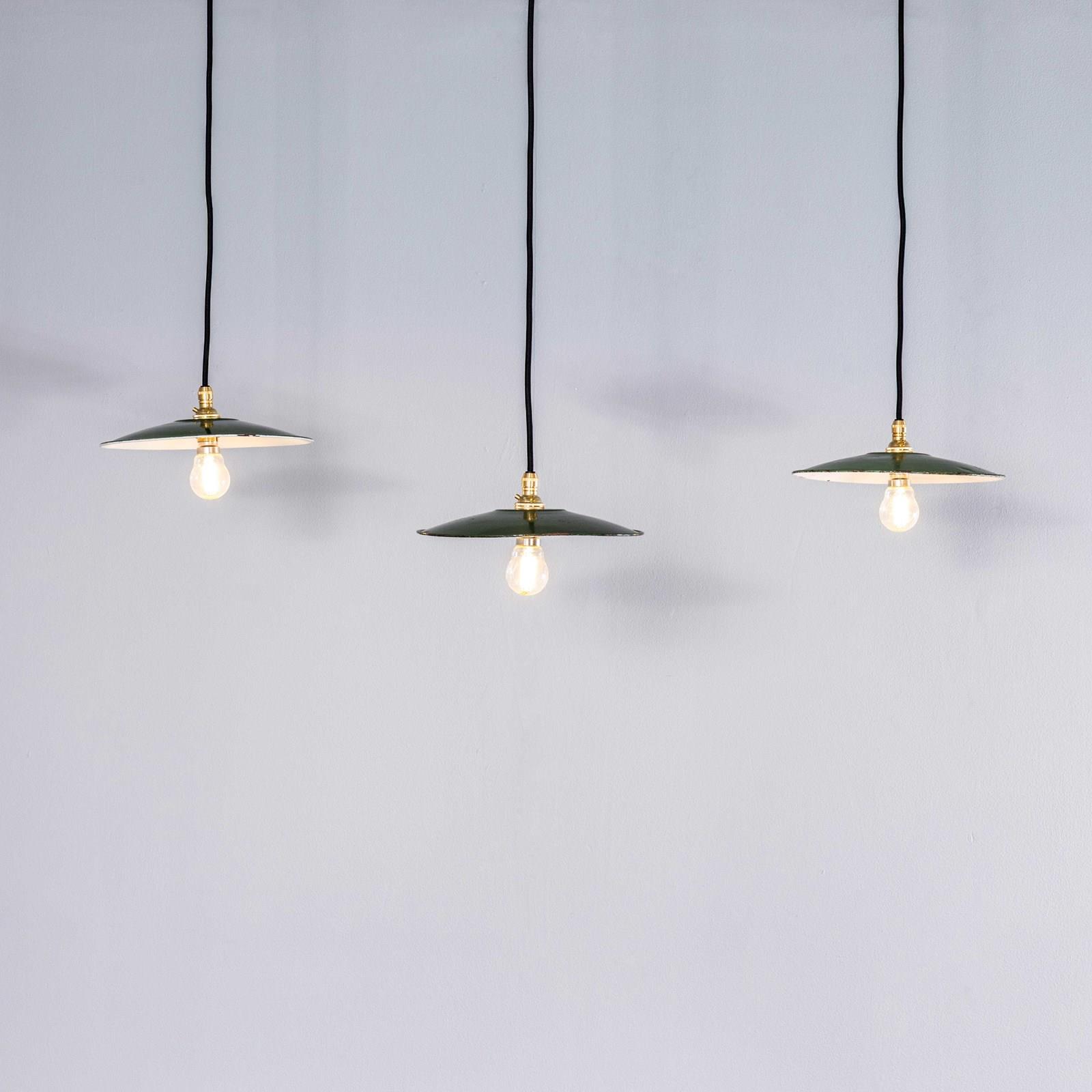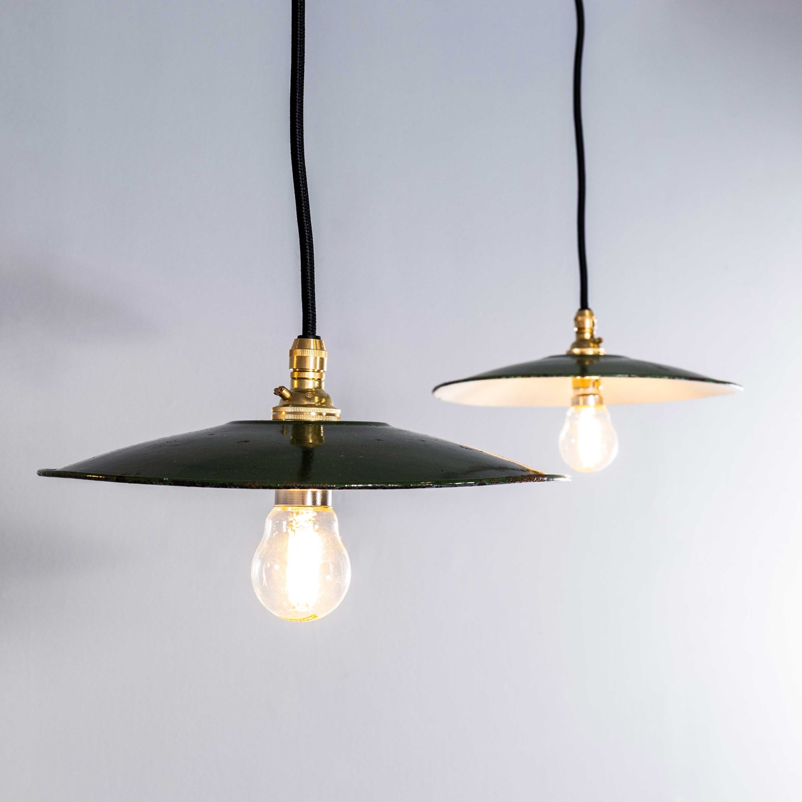 1930'S French Green Café Enamel Coolie Lights - 9.5 Inch