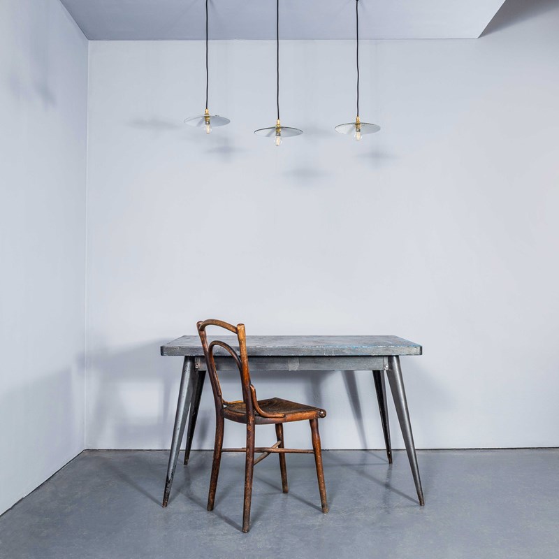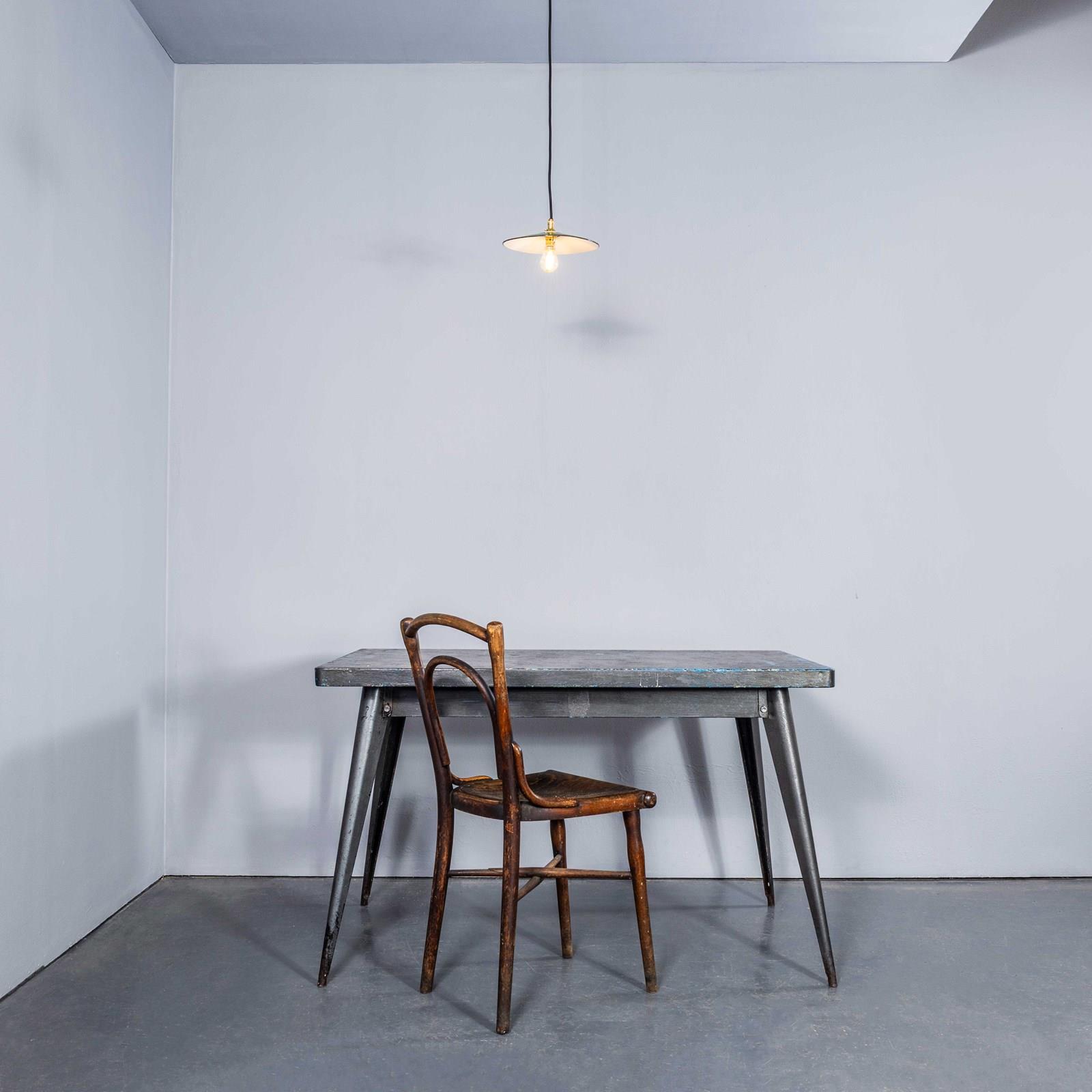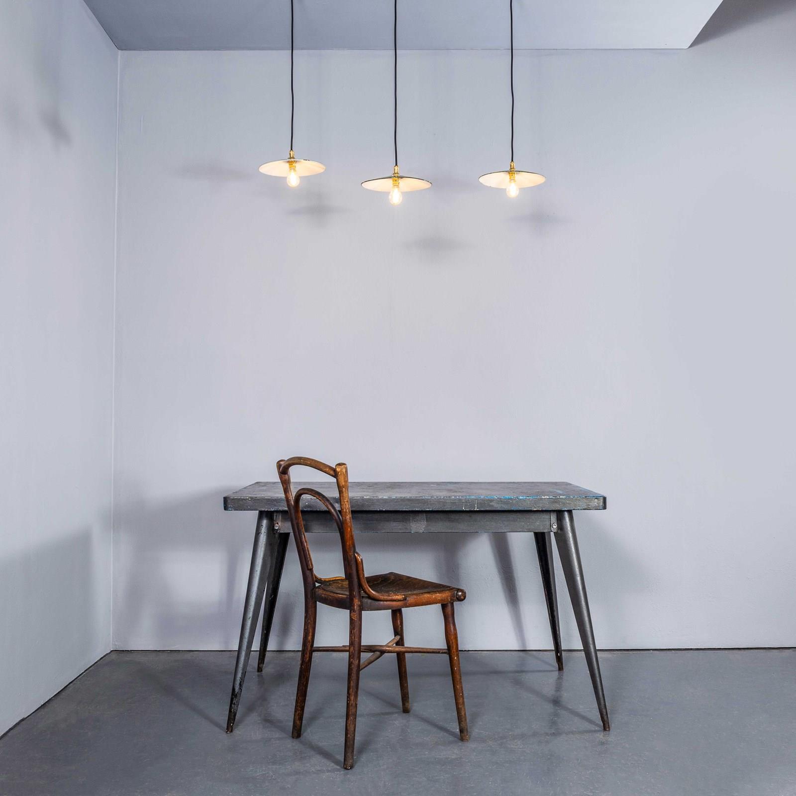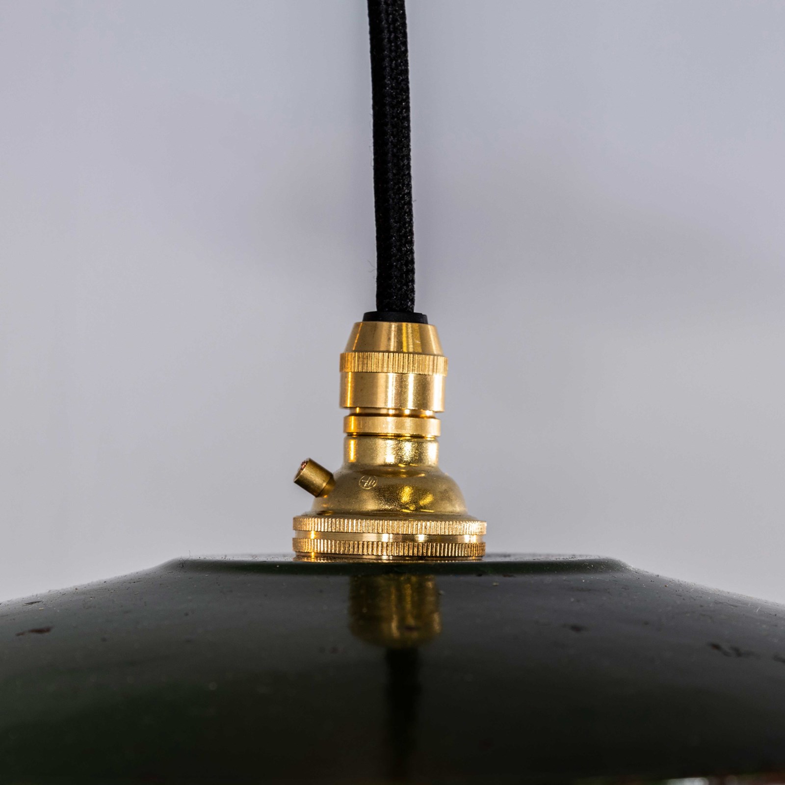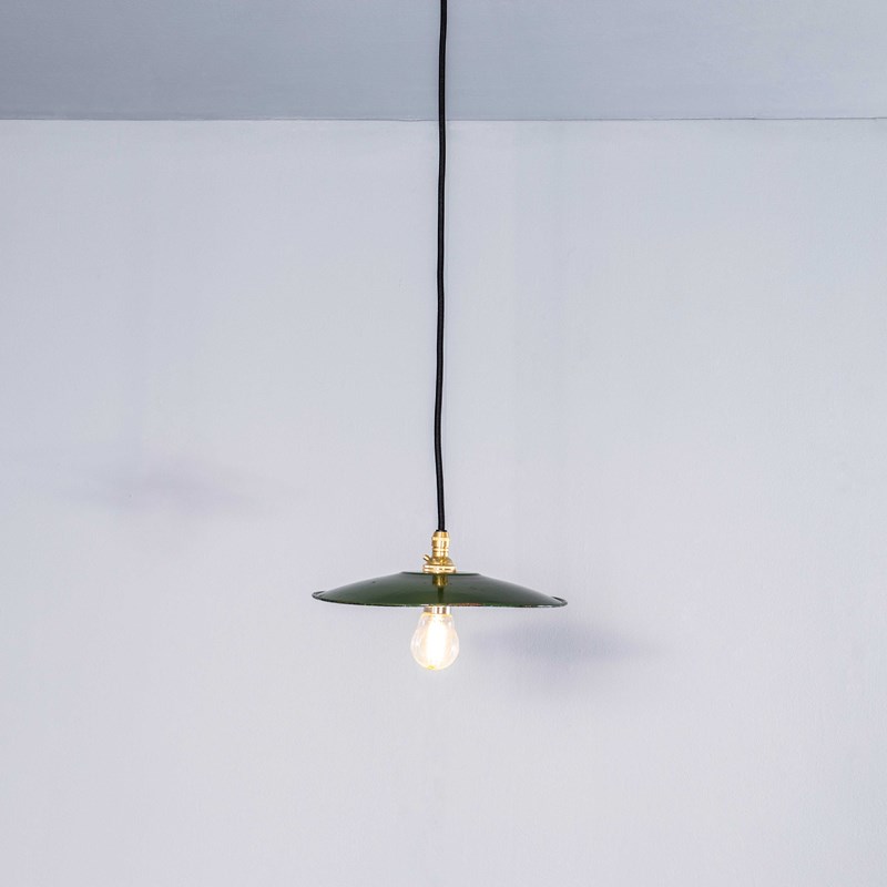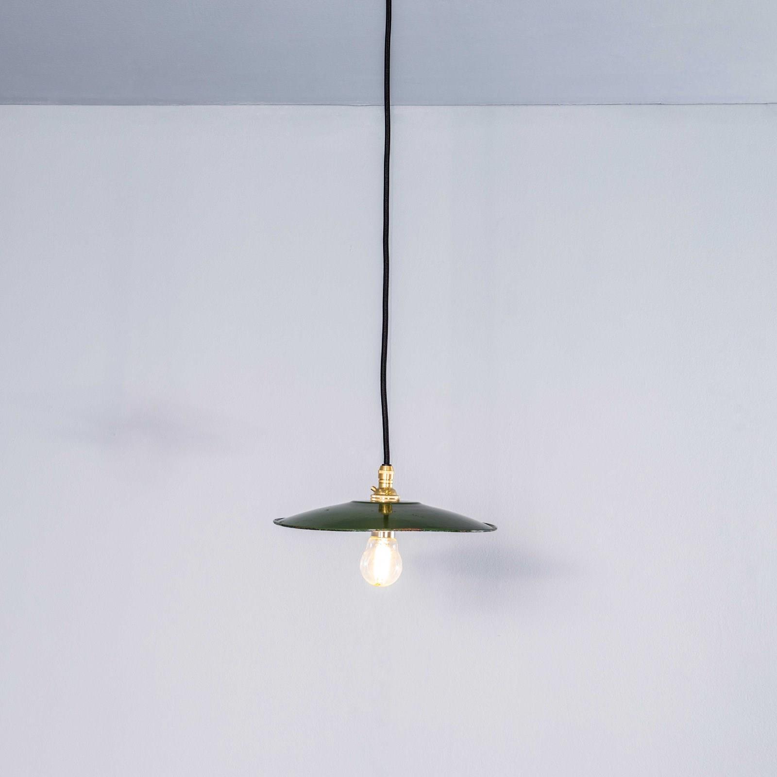 Classic enamel coolie shade from France. One of the most basic and timeless shapes, a simple ‘coolie hat’ shade made from spun steel and enamel. The shade has been cleaned and restored and all electrical components have been removed and replaced with modern European CE standard components to BS EN 60598 and is tested and labelled to BS EN 60598. INCLUDED: The lamp comes completely wired and ready to install including; 2 metres of black fabric covered electrical cable and a clamp ceiling hook as shown. The lamp is fitted with a standard bayonet cap lamp holder for which a wide range of modern and vintage style filament bulbs are widely available. We do not currently sell bulbs and recommend LED bulbs 6W maximum. We can also supply more than 2 metres of hanging cable as required, please contact us separately to discuss. We are specialists in refurbishment of vintage lighting, please contact us with any questions regarding purchase or installation. The lamp is currently wired and fitted for UK and EU compliance. The lamp can be wired for compliance in the US or any global market. Listing is for one lamp.