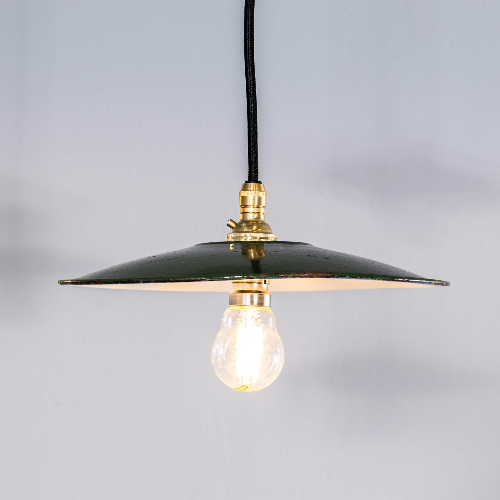 1930’s French Green Café Enamel Coolie Lights – 9.5 Inch.