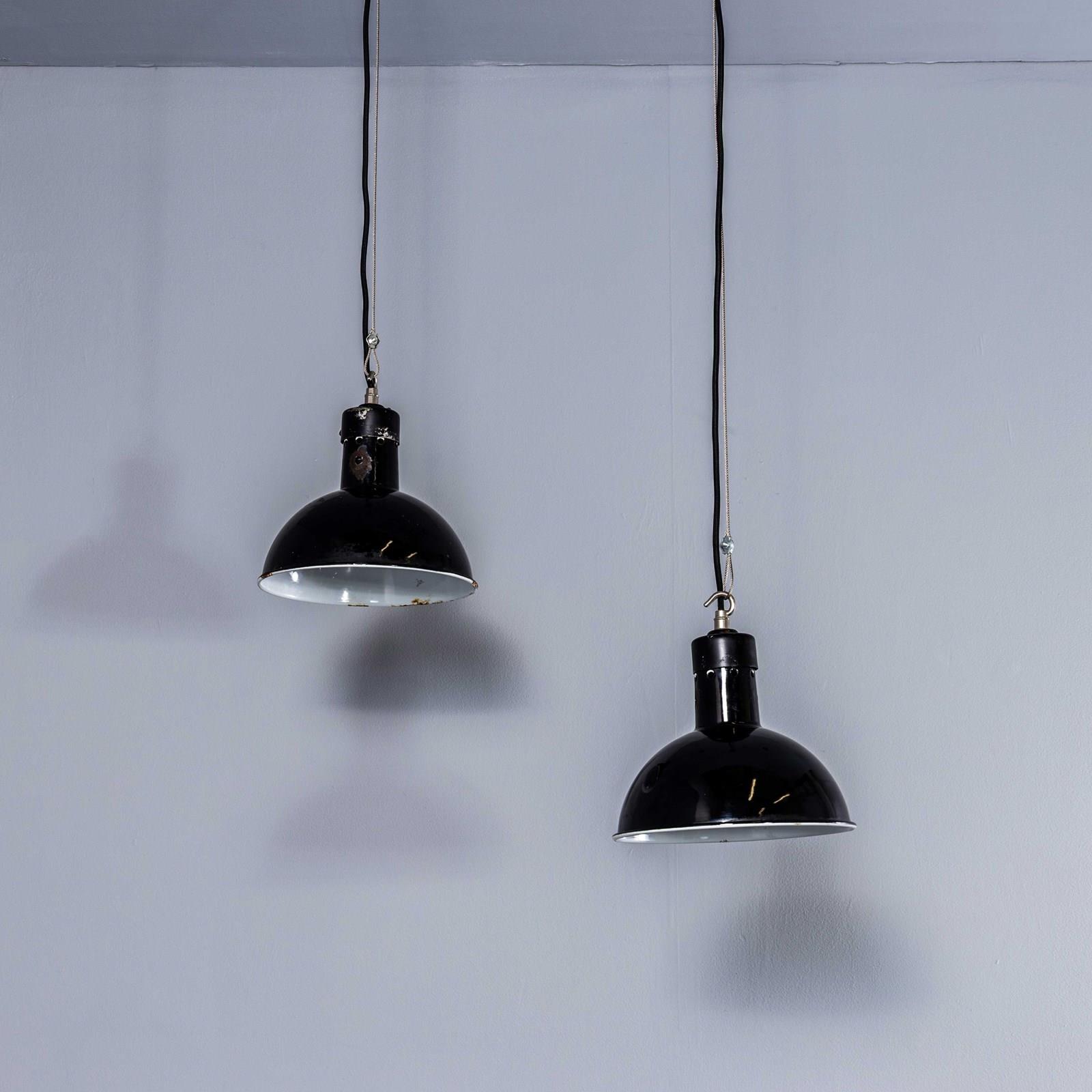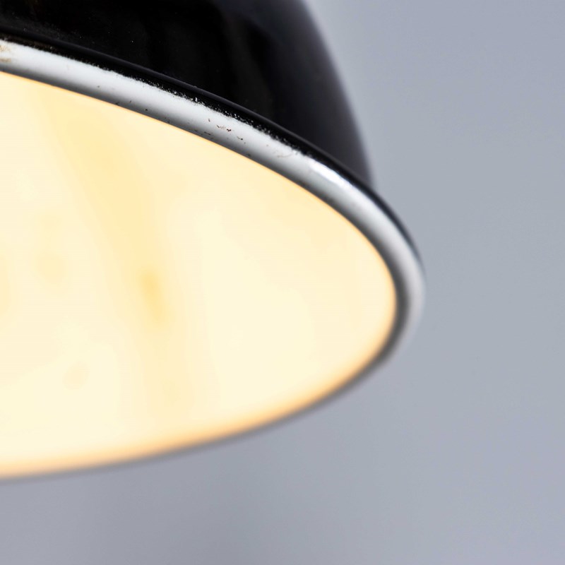 1940'S English Black Enamel Factory Lamps - 10 Inch