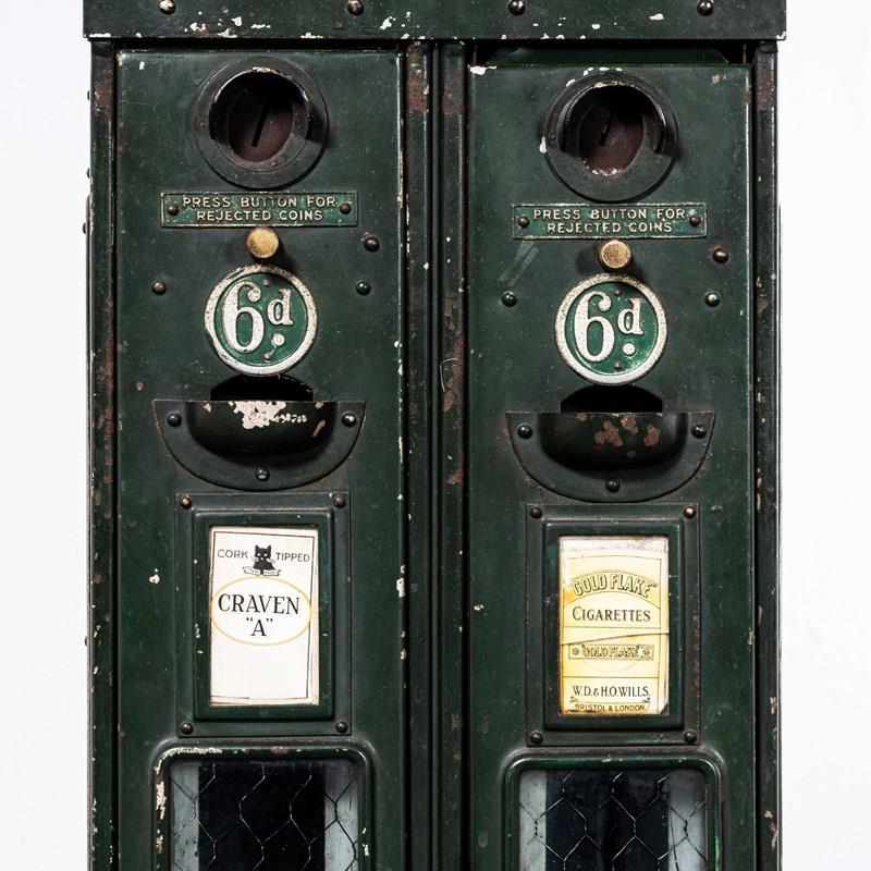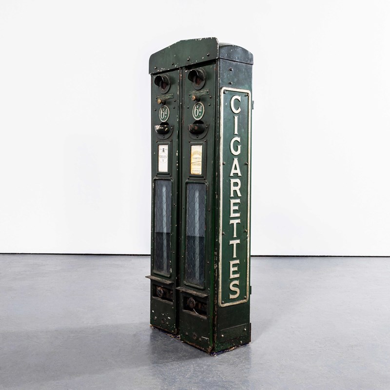 Superb fully original cigarette dispensing machine from the forties. We haven’t tested the mechanism and the machine is sold as a decorative item only. Our workshop has cleaned the machine which is original throughout.