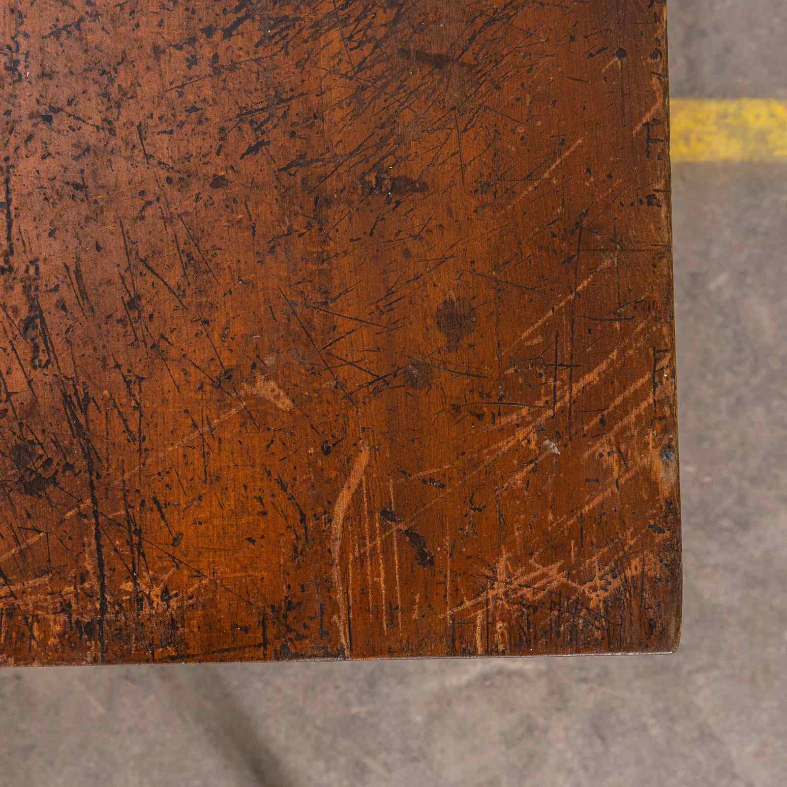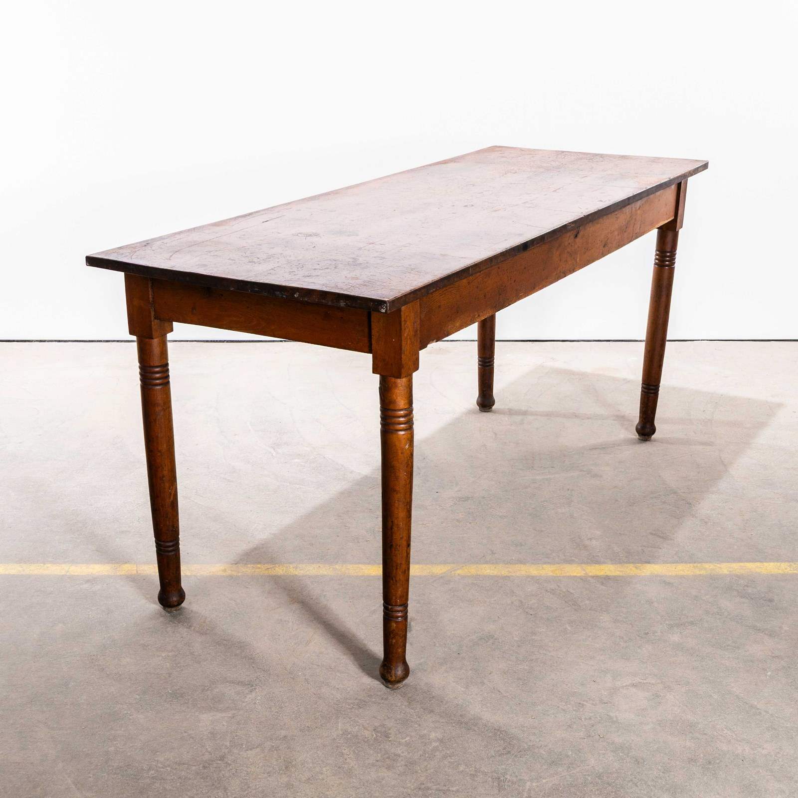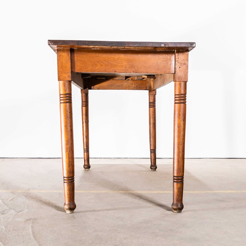 1940’s French Long Barrel Leg Mid Oak Fruitwood Kitchen Dining Table.