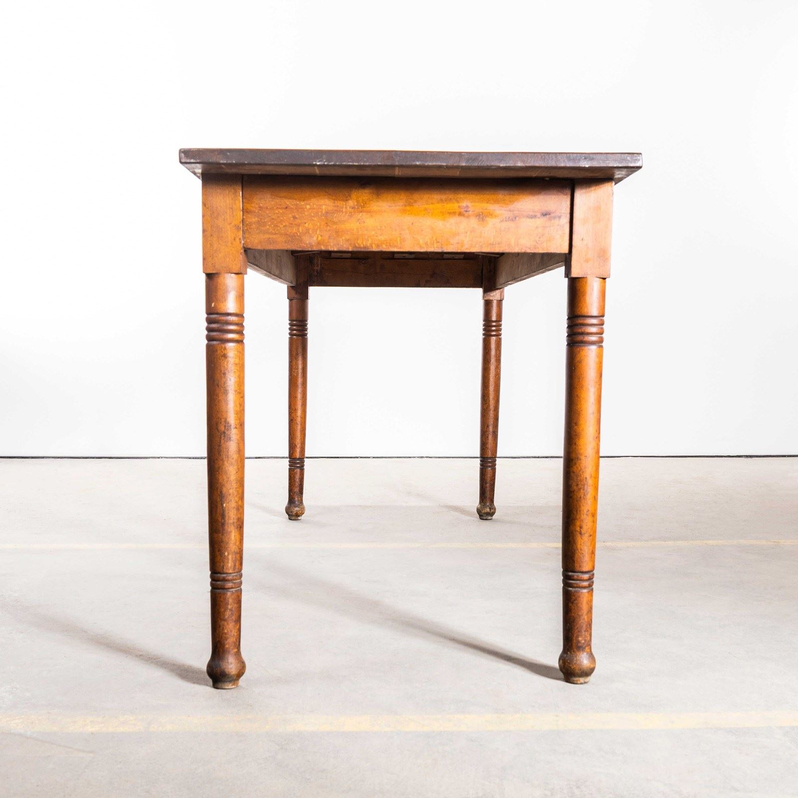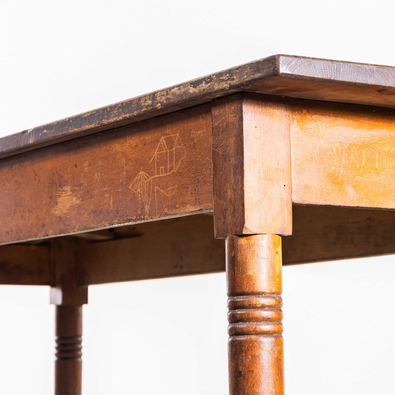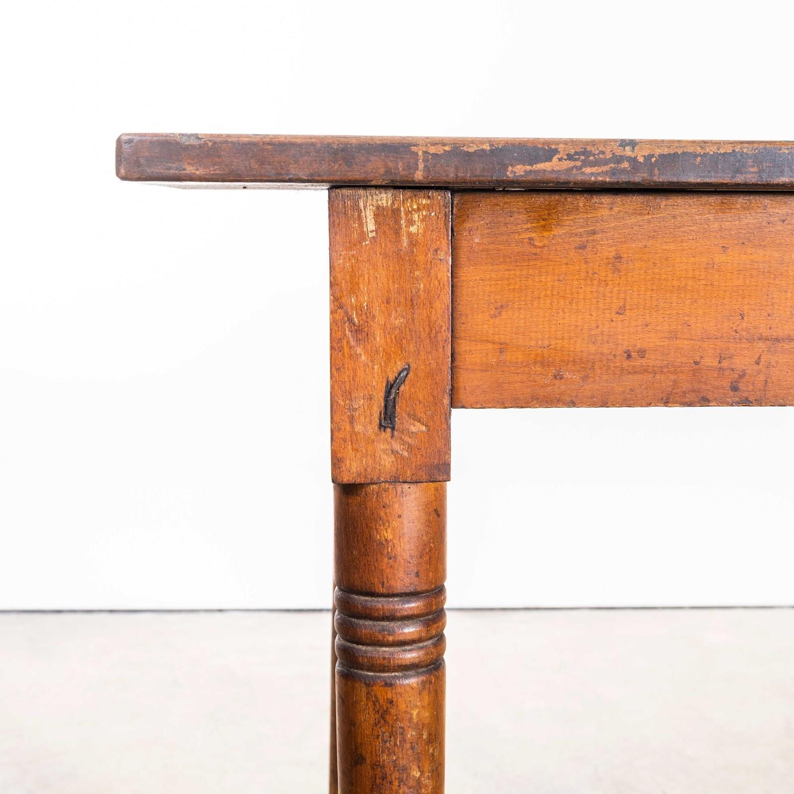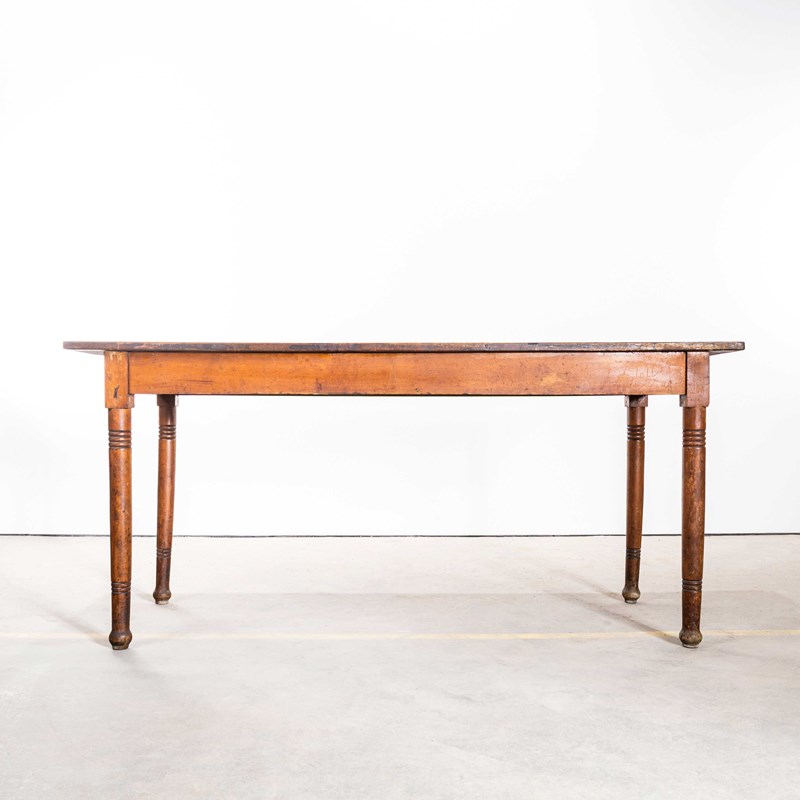 1940’s French Long Barrel Leg Mid Oak Fruitwood Kitchen Dining Table.