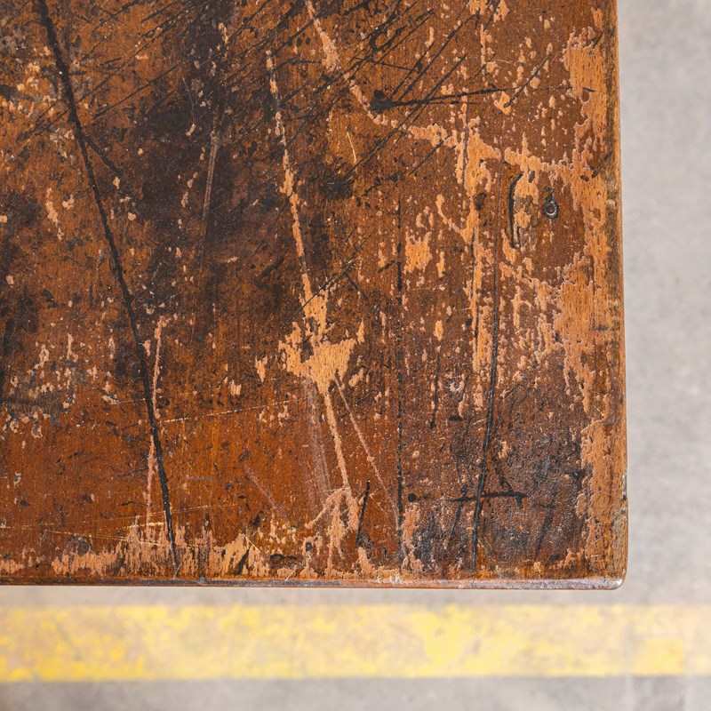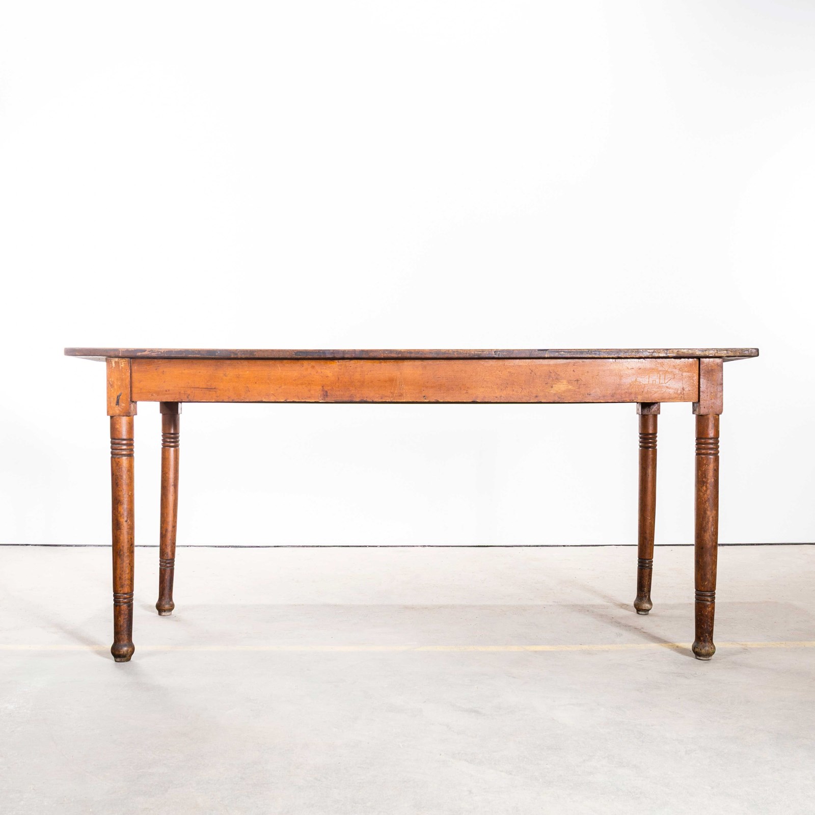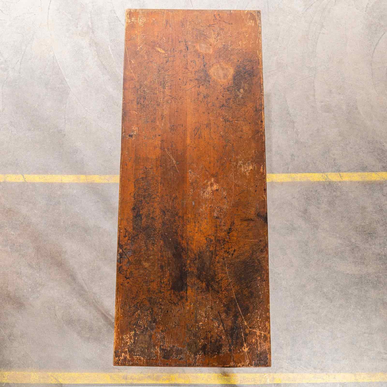 1940’s French Long Barrel Leg Mid Oak Fruitwood Kitchen Dining Table.