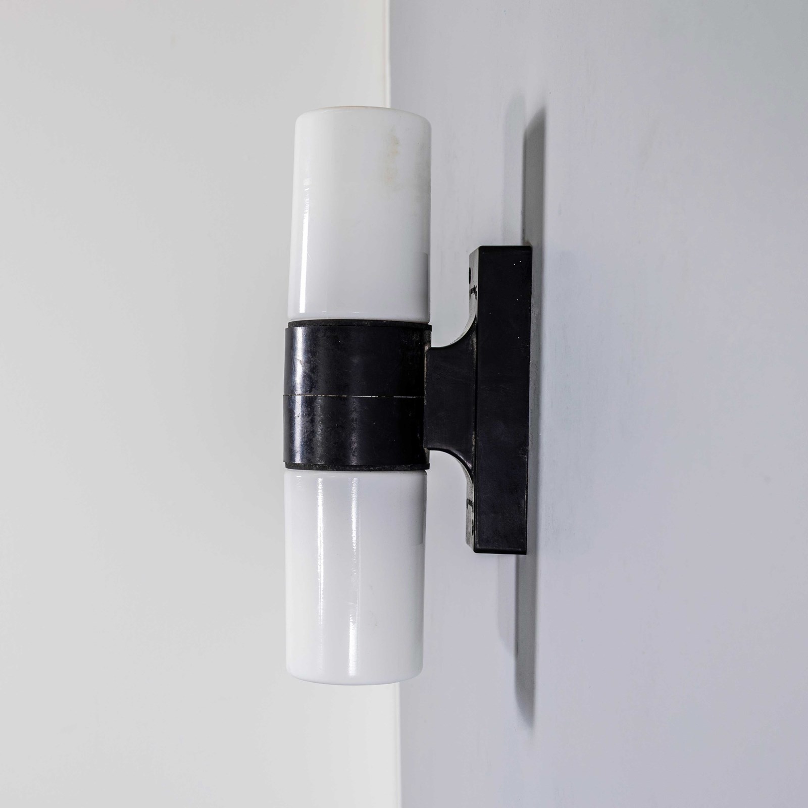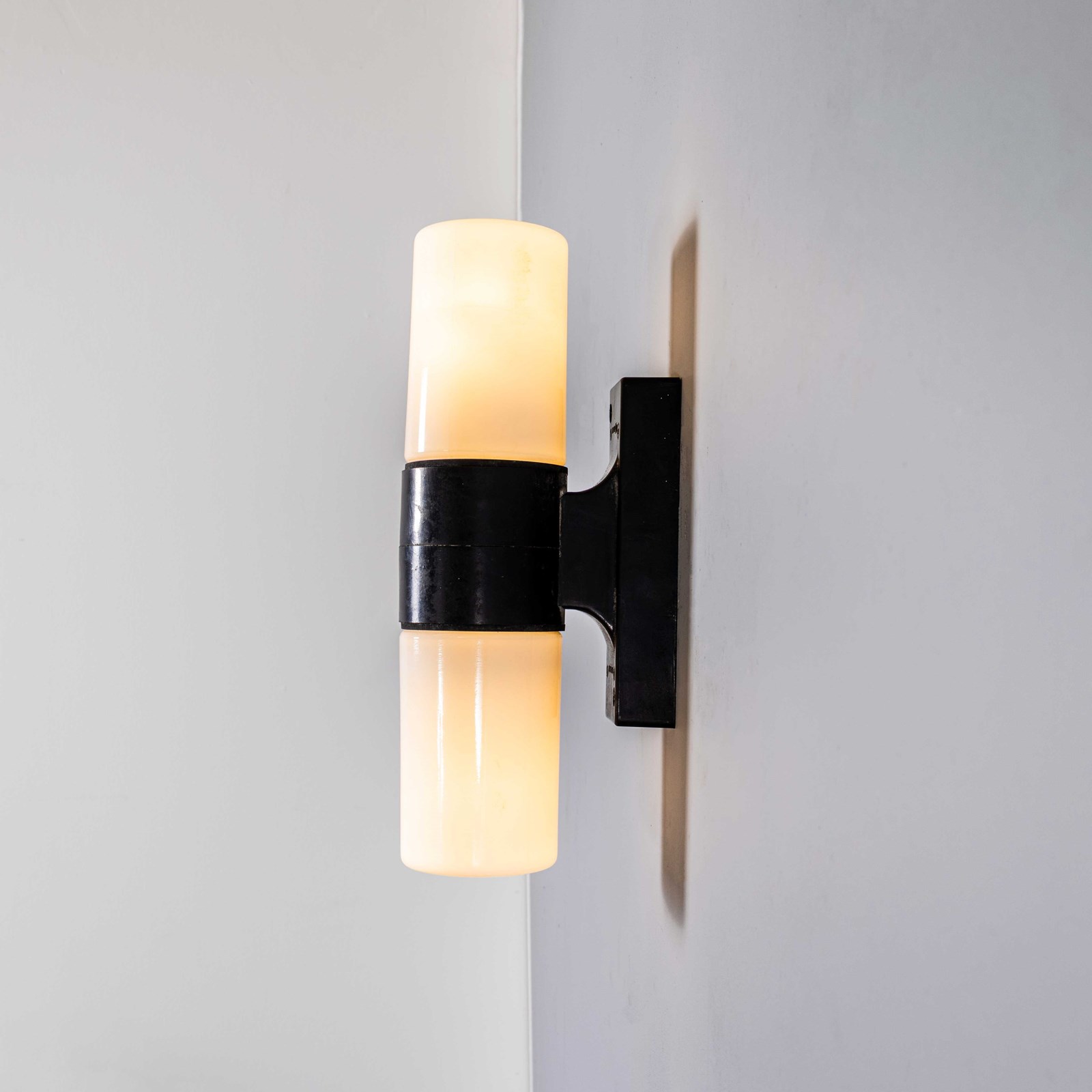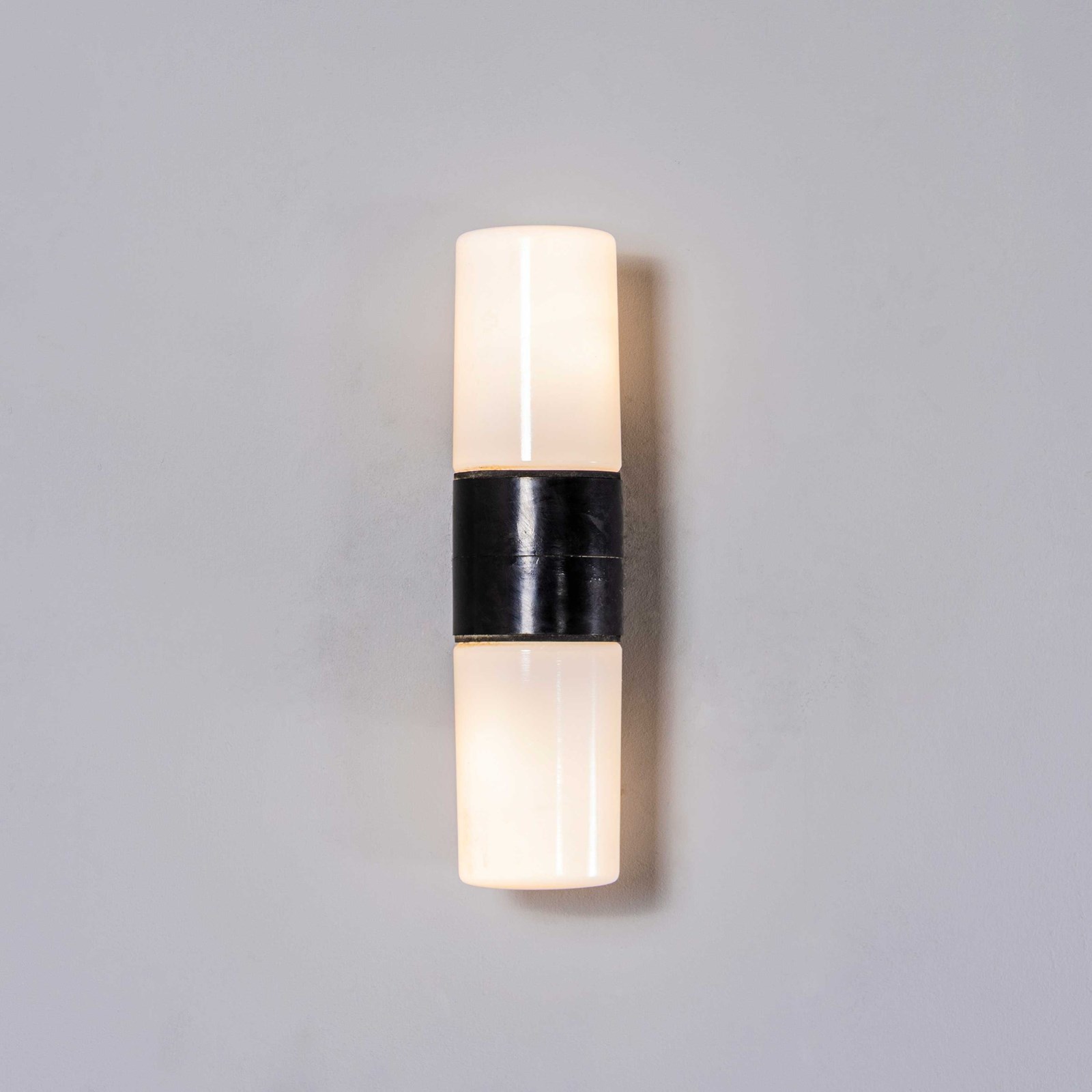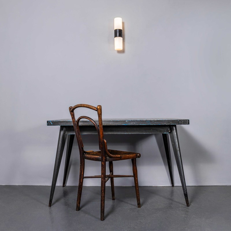 The lamps have a solid Bakelite body (self insulated) and two cylinder opaline shades that screw in over the two separate bulbs. Each lamp has been cleaned and restored. Given the unique nature of the Bakelite wall mounts the original female bulb lamp holders are retained. The lamp is fitted with a standard E27 threaded lamp holder for which a wide range of modern and vintage style filament bulbs are widely available. All wiring has been replaced and the lamps are PAT tested. We do not currently sell bulbs and recommend LED bulbs 6W maximum. We are specialists in refurbishment of vintage lighting, please contact us with any questions regarding purchase or installation. The lamp is currently wired and fitted for UK and EU compliance. The lamp can be wired for compliance in the US or any global market. Listing is for one lamp.