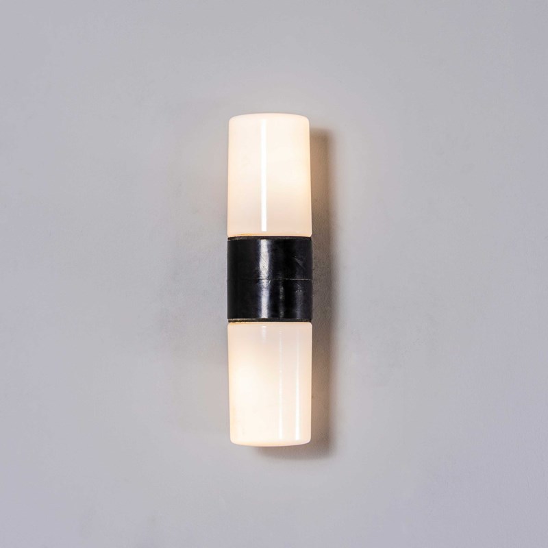 1940’s Opaline Glass And Bakelite Baton Wall Lamps.