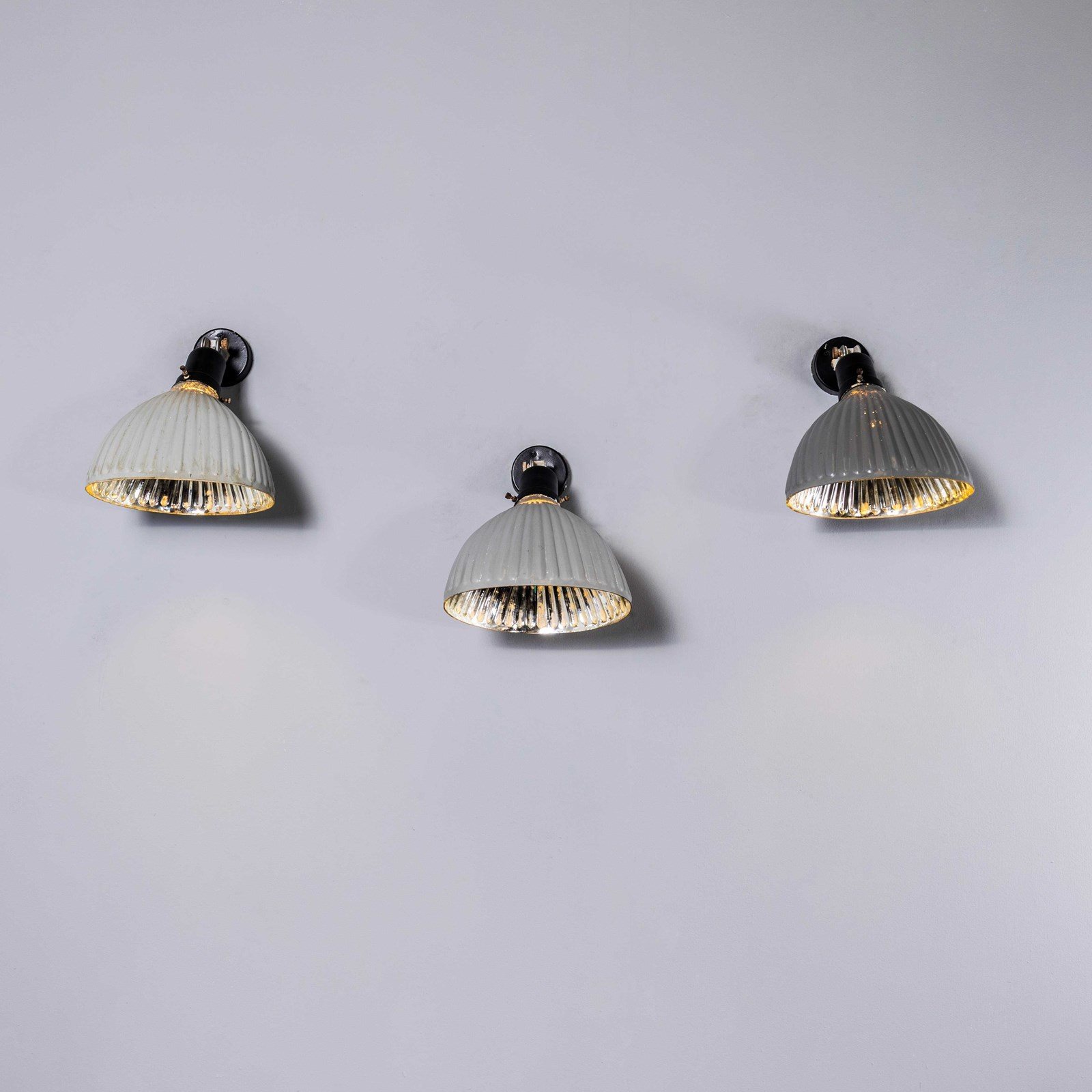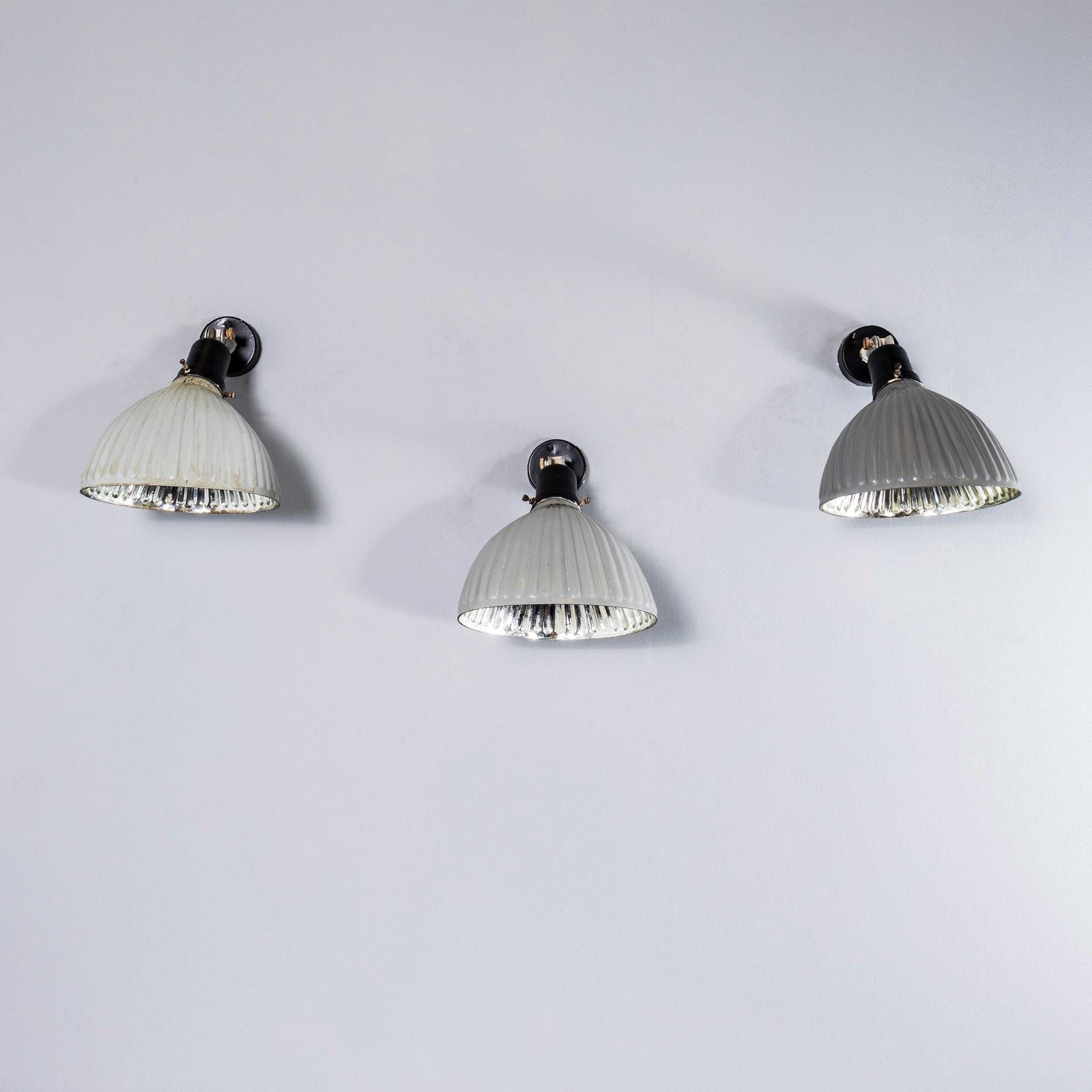 Made by Instala in Decin Czech republic, these are very early surviving lamps from the forties. The lamp is a simple adjustable reflective lamp that can be put on the ceiling or wall. The arm can move in a 180-degree arc, up and down and the shade can spin on a 360-degree swivel. The lamp has been cleaned and restored and tested and labelled to BS EN 60598. The lamp comes completely wired and ready to install, due to the nature of the lamp holder design we have left the original lamp holder which is in excellent condition. The shade is mouthblown glass, mercury silver on the inside and painted grey on the outside. The lamp is fitted with a standard E27 threaded lamp holder for which a wide range of modern and vintage style filament bulbs are widely available. We do not currently sell bulbs and recommend LED bulbs 6W maximum. The lamp is currently wired and fitted for UK and EU compliance. The lamp can be wired for compliance in the US or any global market. Listing is for one lamp.