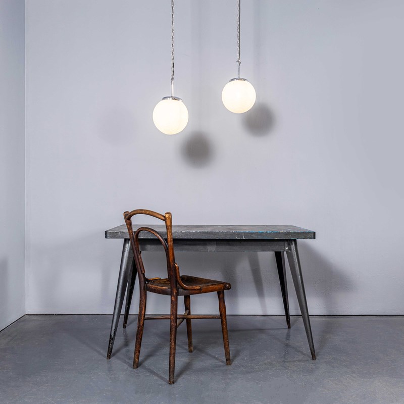 Each lamp has been cleaned and restored and all electrical components have been removed and replaced with modern European CE standard components to BS EN 60598. Each lamp is individually tested and labelled to BS EN 60598. INCLUDED: Each lamp comes completely wired and ready to install with two metres of hanging equipment (Flex chain/wire etc) as described and a ceiling hook as shown. The lamp is fitted with a standard E27 threaded lamp holder for which a wide range of modern and vintage style filament bulbs are widely available. We do not currently sell bulbs and recommend LED bulbs 6W maximum. We can also supply more than 2 metres of hanging cable/wire/chain etc. as required, please contact us separately to discuss. We are specialists in refurbishment of vintage lighting, please contact us with any questions regarding purchase or installation. The lamp can be wired for compliance in the US or any global market. Listing is for one lamp.