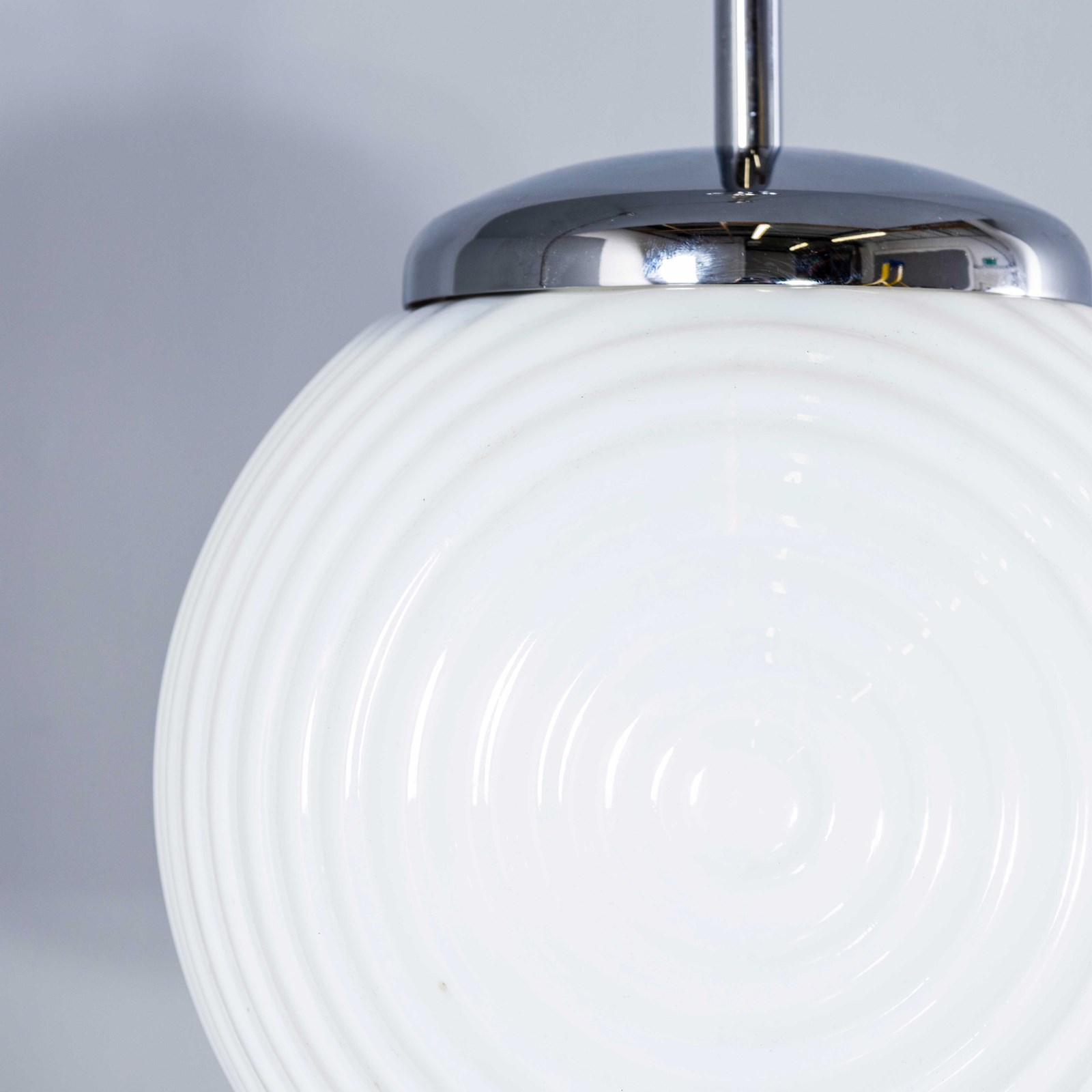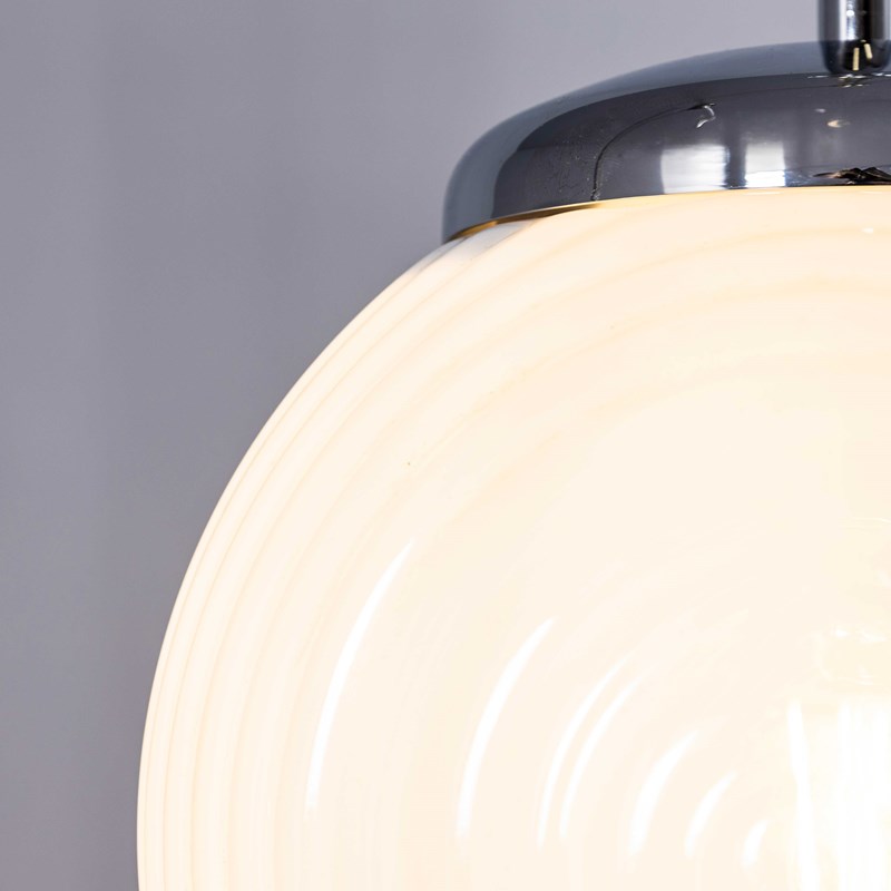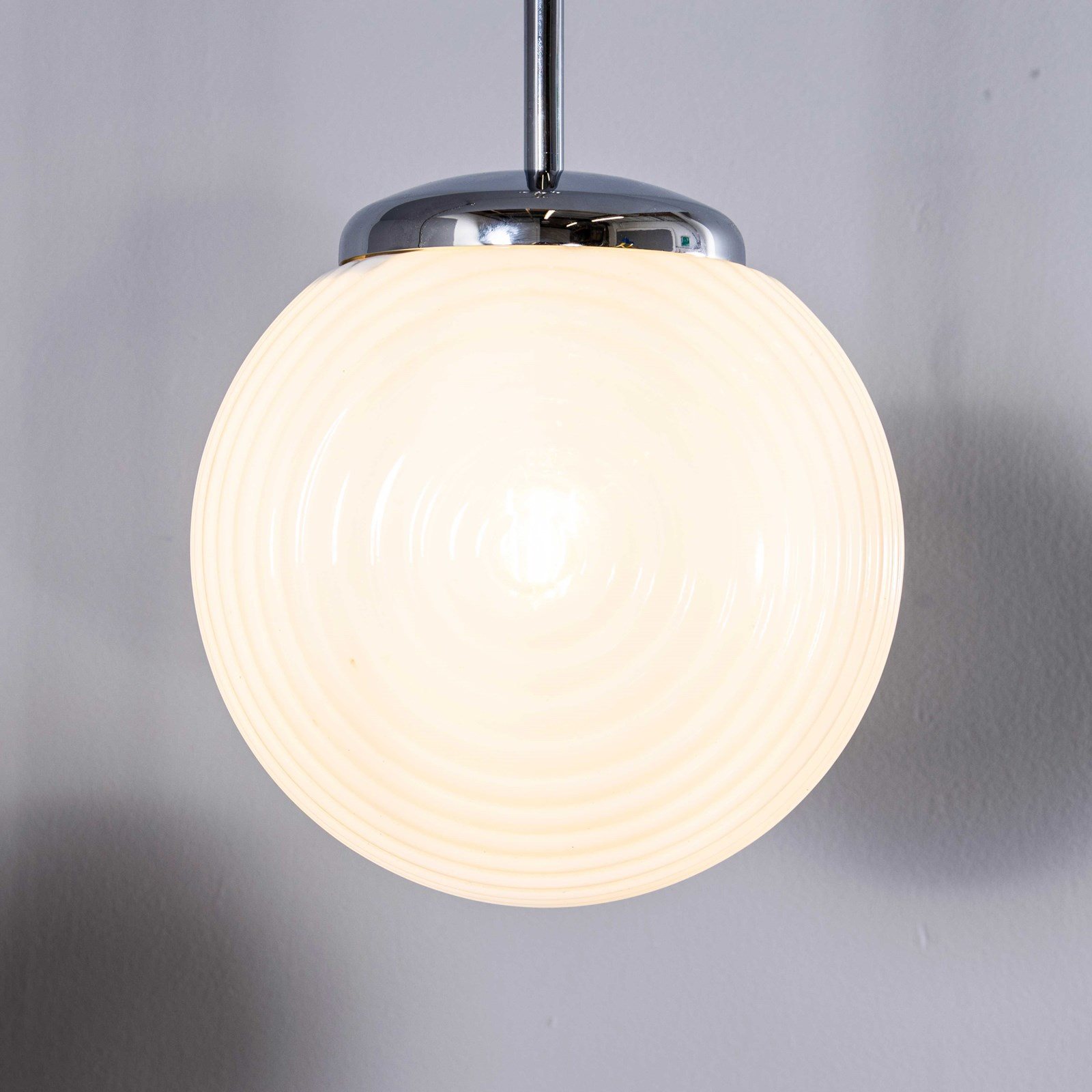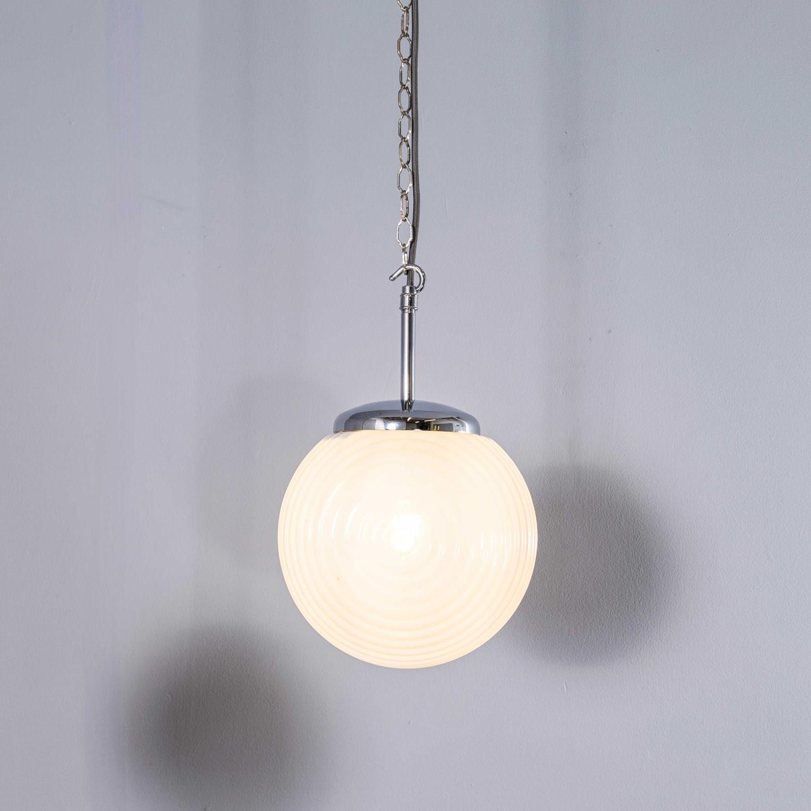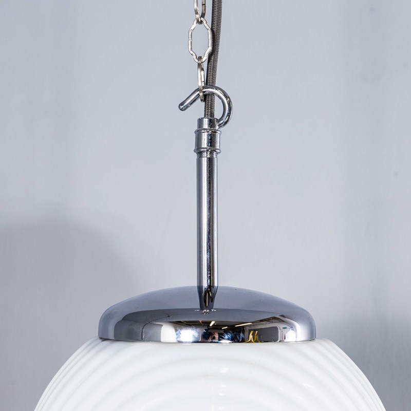 1940'S Original Mouth Blown Ribbed Opaline Pendant Lamp - 22Cm