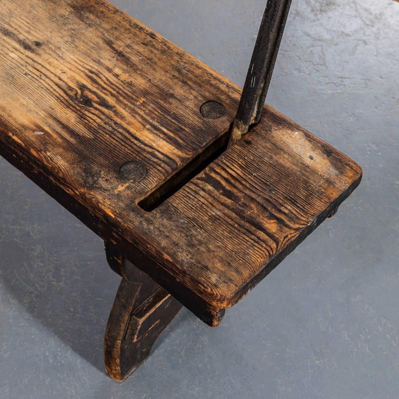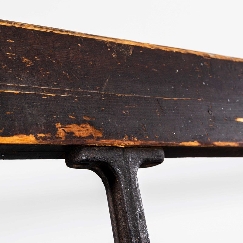 1940'S Pitch Pine English Cast Metal Railway Bench