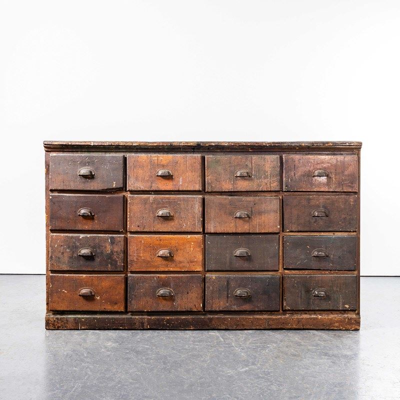 1940’s Solid Pitch Pine French Merchants Bank Of Drawers – Sixteen Drawers.