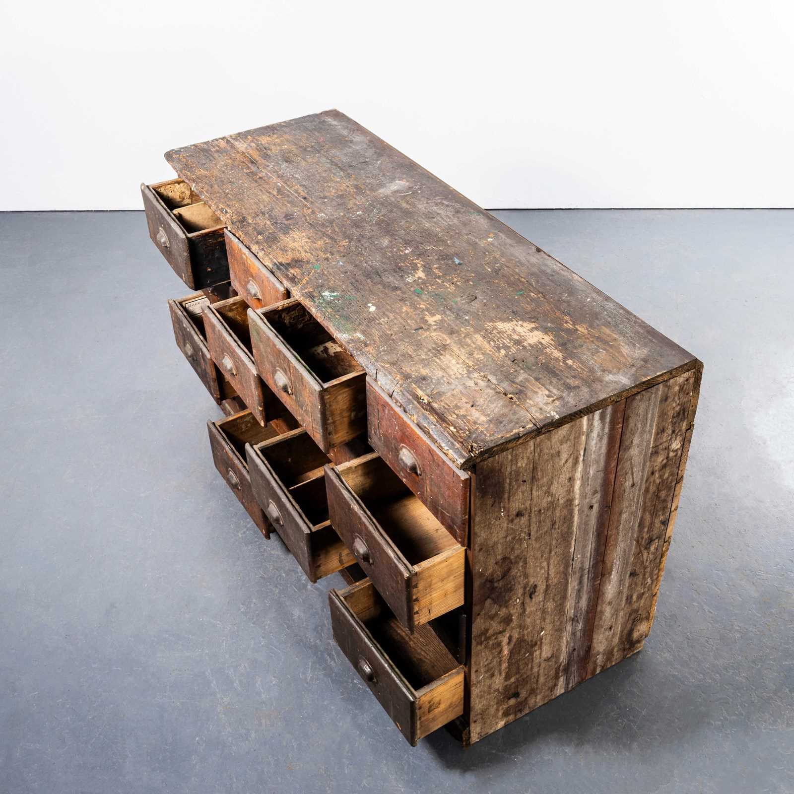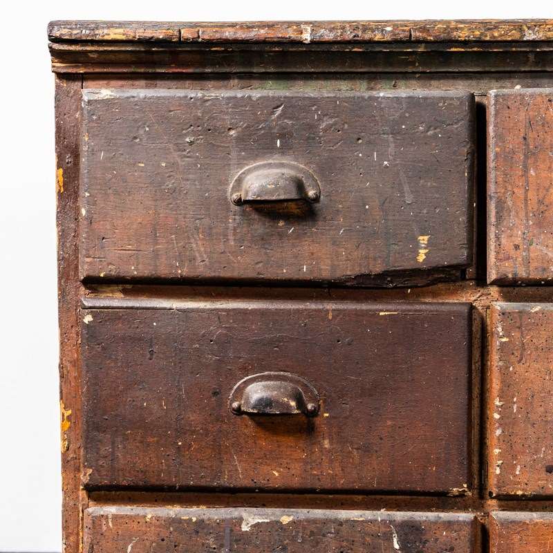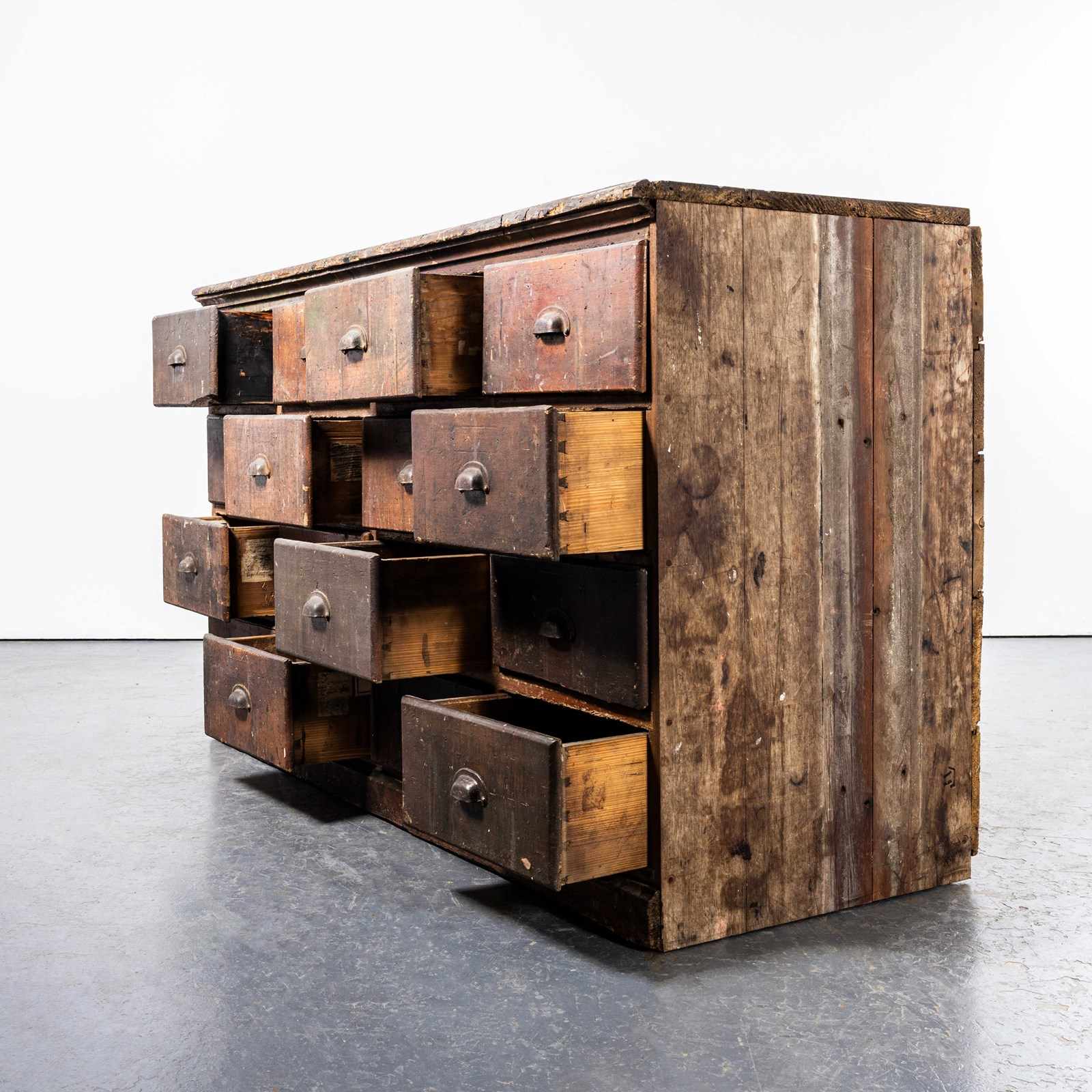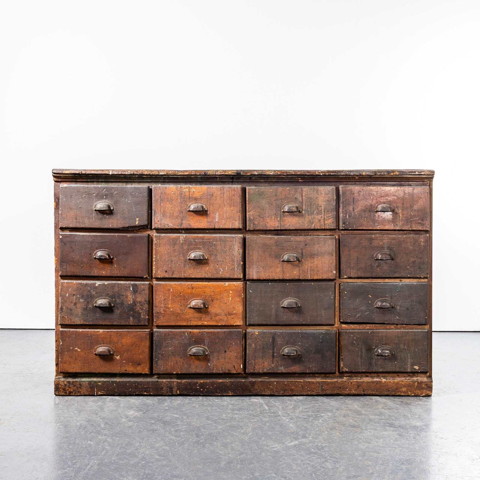 1940'S Solid Pitch Pine French Merchants Bank Of Drawers - Sixteen Drawers