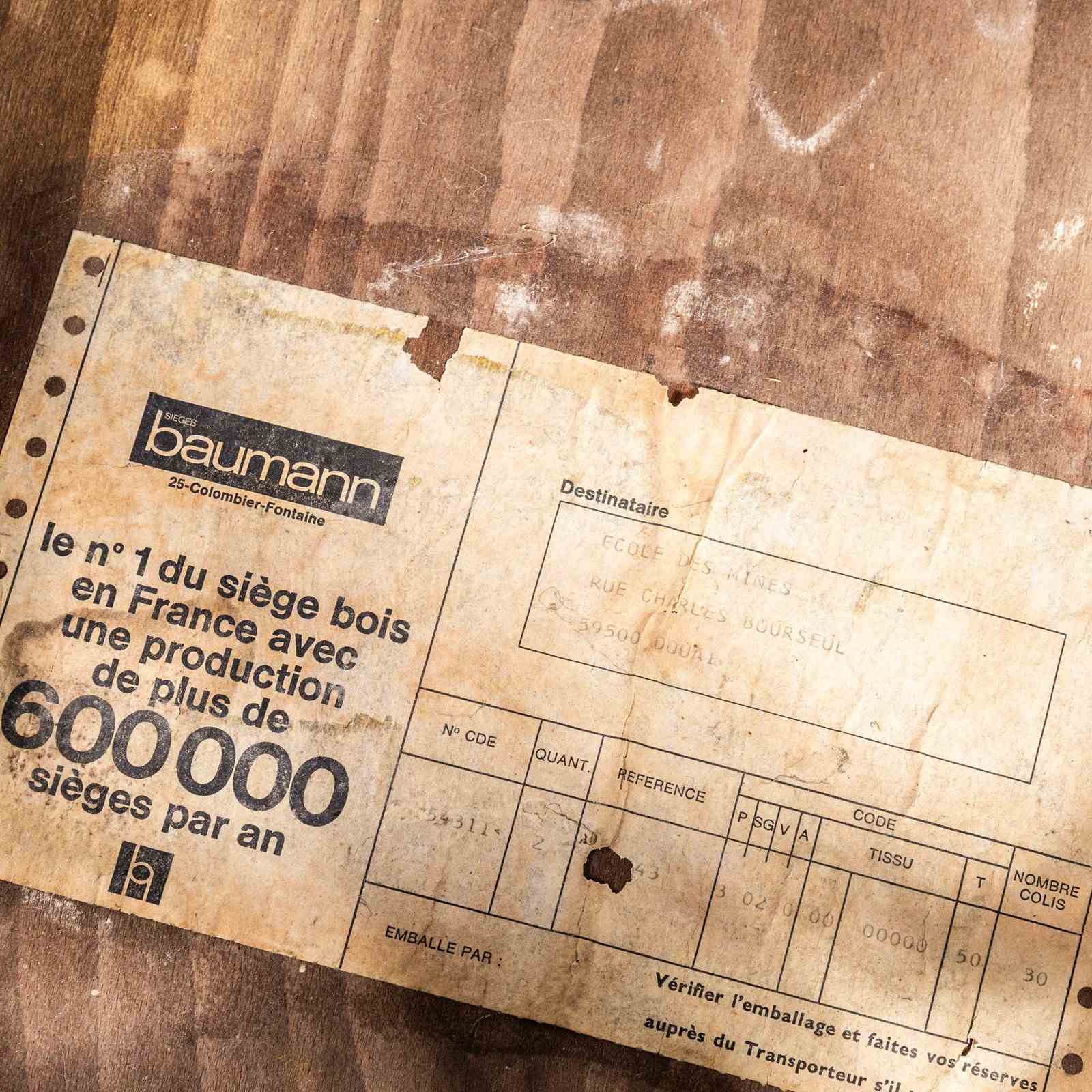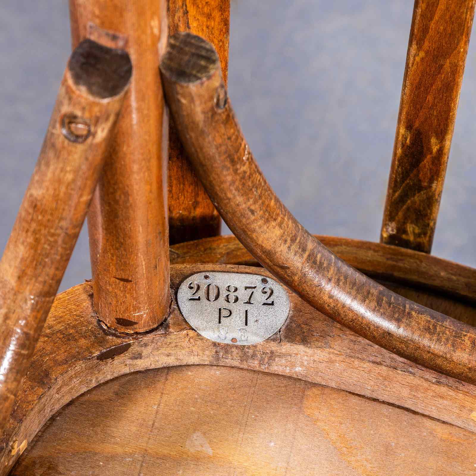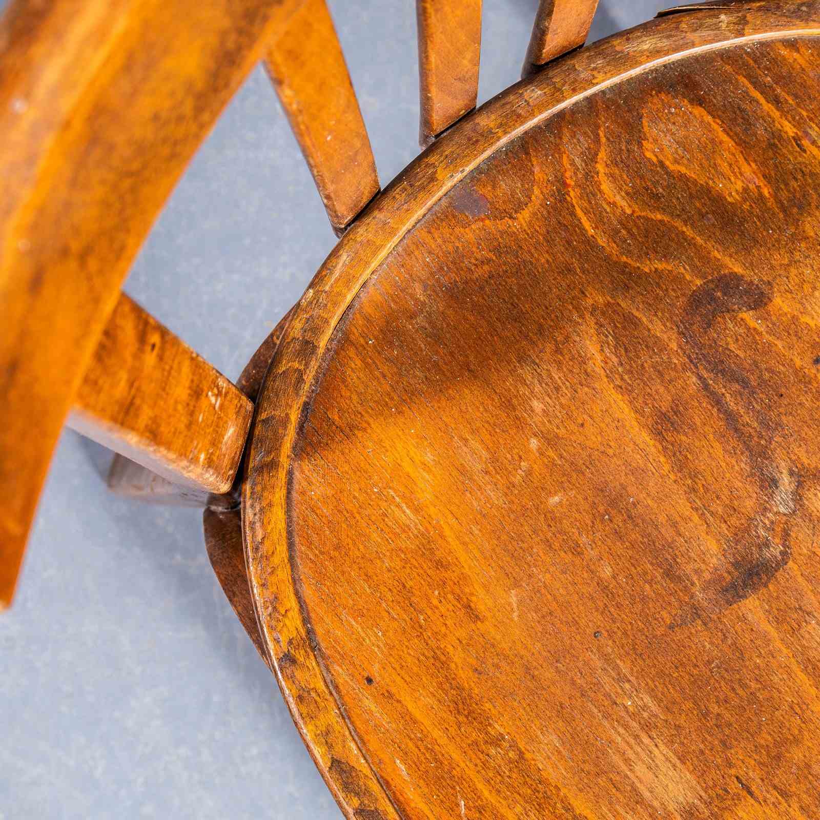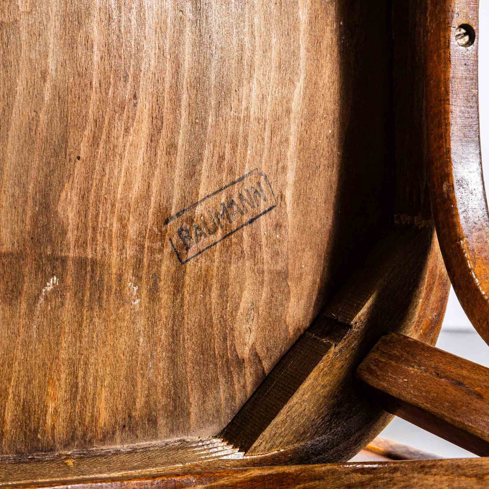 1950’s Angular French Bentwood Dining Chairs – Set Of Five. Made by the maker Baumann. Baumann is a slightly off the radar French producer just starting to gain traction in the market. Baumann was founded in 1901, by Swiss man Emile Baumann, in Colombier Fontaine, France. Baumann started producing a simple child’s chair but grew rapidly to be a large bentwood producer with showrooms all over France. Beautifully made and designed. Stunning original patina with lovely sun bleached frames. We service and wax each chair before they leave our workshop and we deliver chairs of excellent quality.