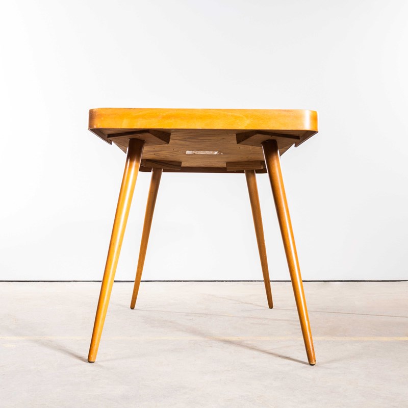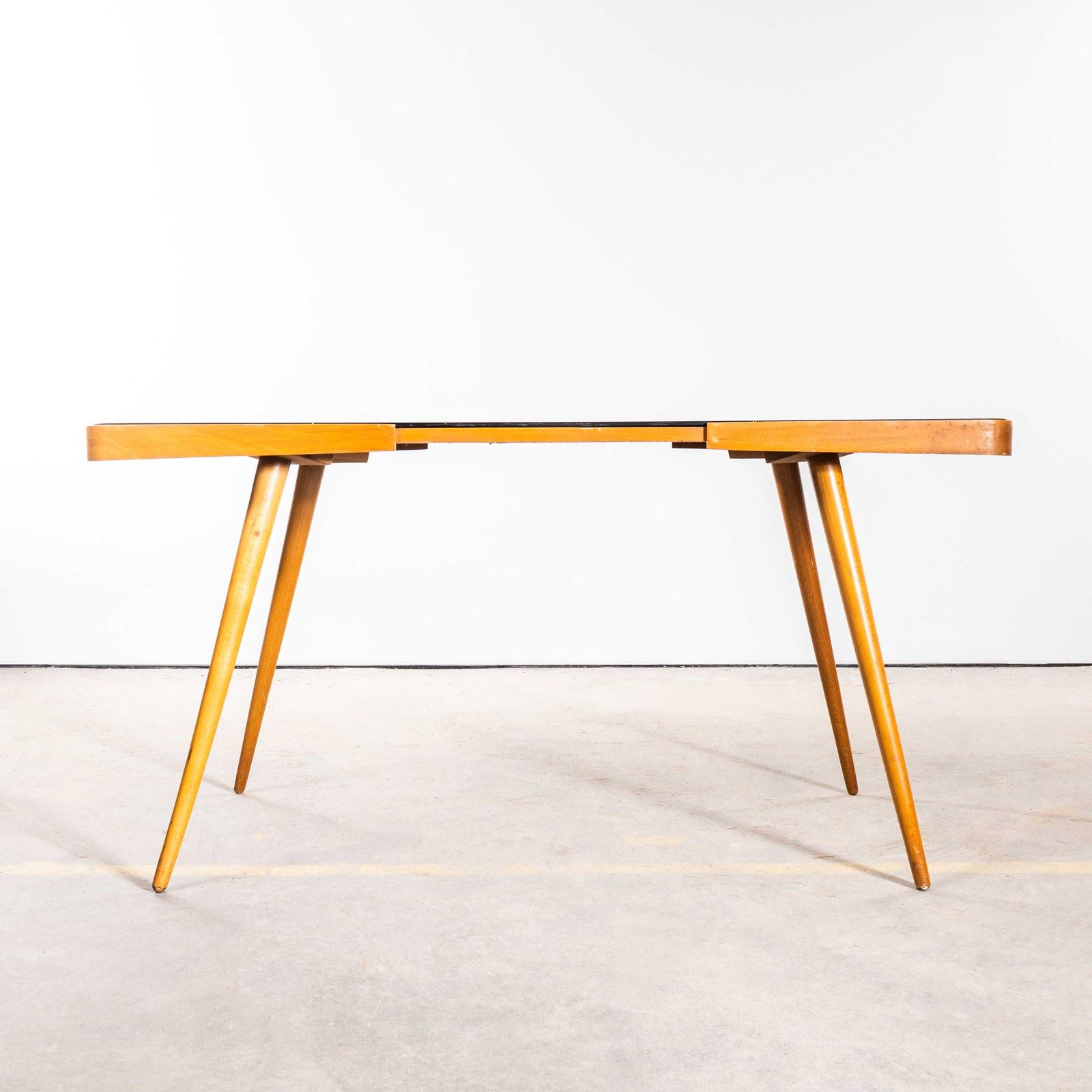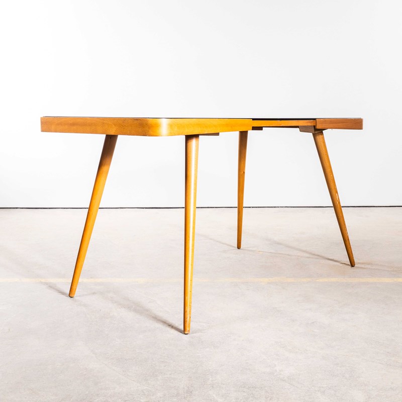 Made by Pesky Nabytek in the Czech Republic this elegant table has its original black glass. The frame is a rich honey colour made from birch and beech. Our workshop has cleaned and serviced the table, it is strong and stable and good to go.