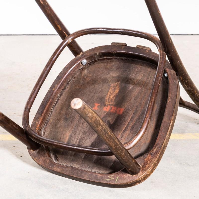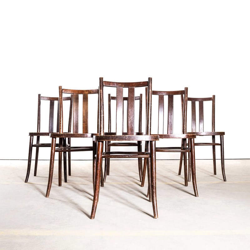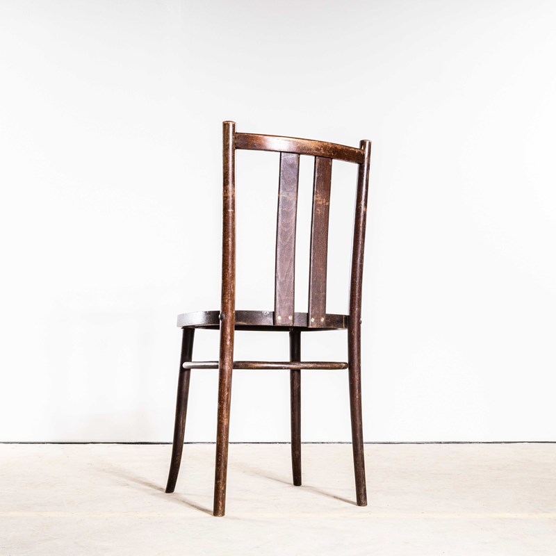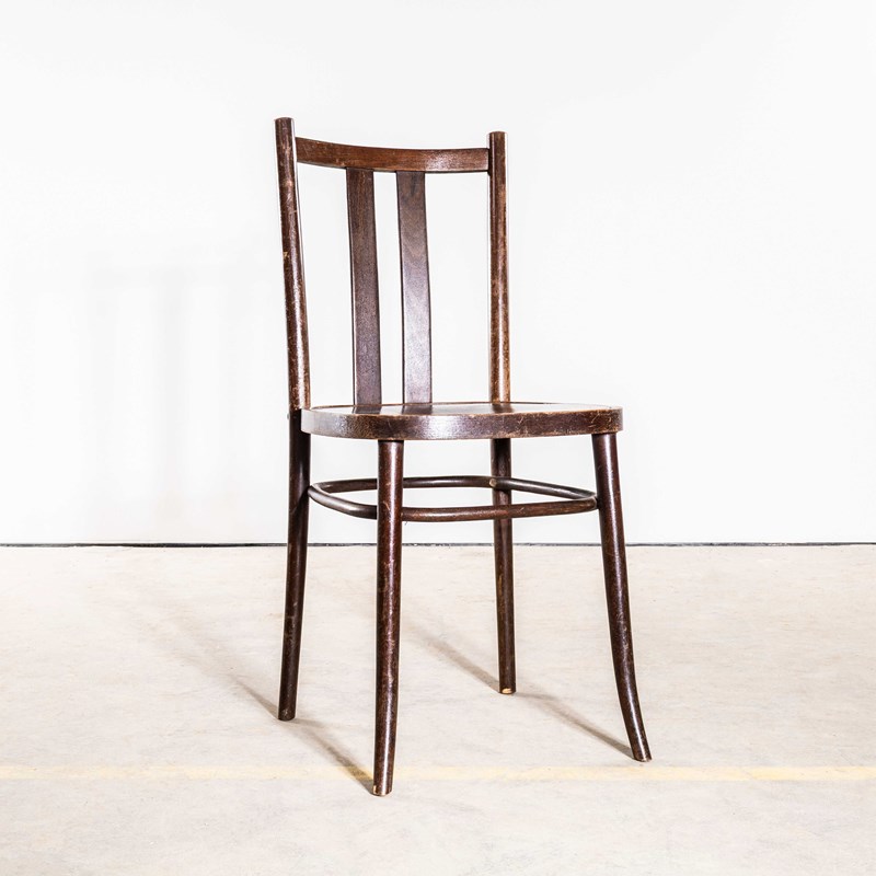 Good quality classic bentwood dining chairs with a simple refined back and in a rich dark oak colour with brilliant age and character. The chairs were made in Eastern Europe using solid steam bent beech, they are a heavy weight robust chair with a good wear and age. Our workshop has serviced each chair, they are good to go. Seat Height: 46cm.