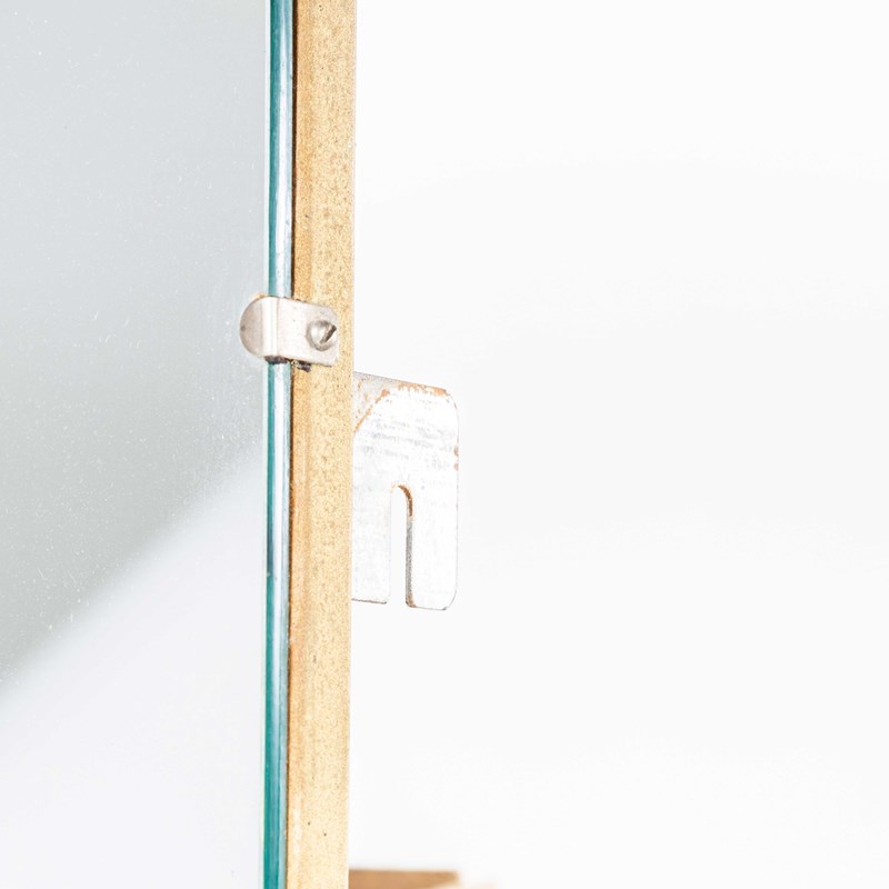 Nothing beats a good mirror and we buy them for the quality of the glass and the foxing, the level of deterioration in the mirror film that gives the mirror the character. This is a dressing table mirror repurposed. Wood backed can be hung with attachments (not provided).