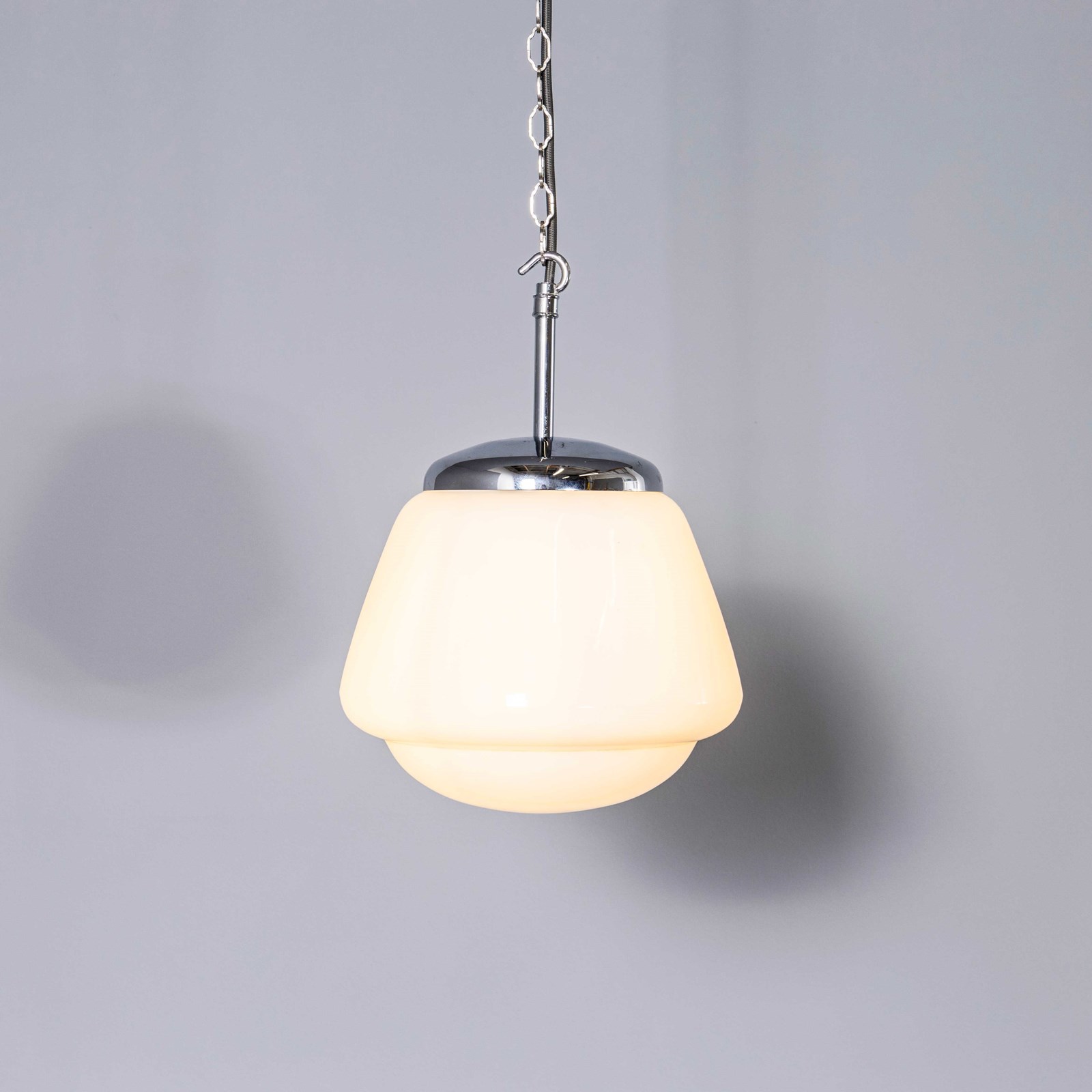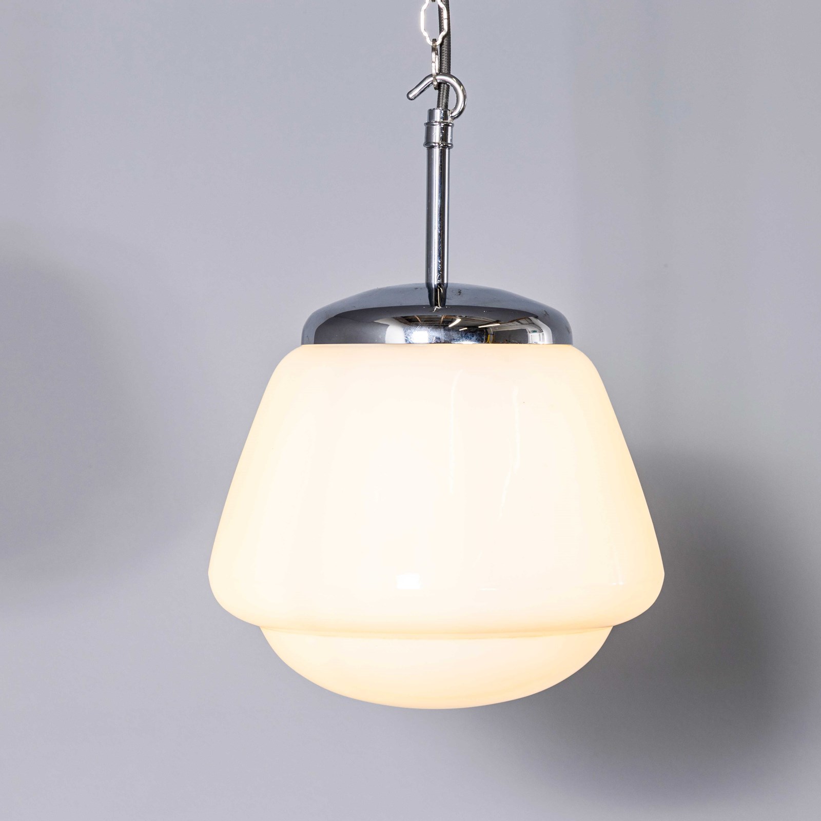 Each lamp has been cleaned and restored and all electrical components have been removed and replaced with modern European CE standard components to BS EN 60598. Each lamp is individually tested and labelled to BS EN 60598. INCLUDED: Each lamp comes completely wired and ready to install with two metres of hanging equipment (Flex chain/wire etc) as described and a ceiling hook as shown. The lamp is fitted with a standard E27 threaded lamp holder for which a wide range of modern and vintage style filament bulbs are widely available. We do not currently sell bulbs and recommend LED bulbs 6W maximum. We can also supply more than 2 metres of hanging cable/wire/chain etc. as required, please contact us separately to discuss. We are specialists in refurbishment of vintage lighting, please contact us with any questions regarding purchase or installation. The lamp can be wired for compliance in the US or any global market. Listing is for one lamp.