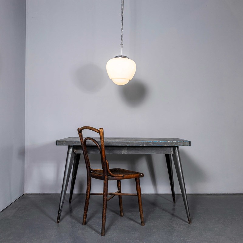 Each lamp has been cleaned and restored and all electrical components have been removed and replaced with modern European CE standard components to BS EN 60598. Each lamp is individually tested and labelled to BS EN 60598. INCLUDED: Each lamp comes completely wired and ready to install with two metres of hanging equipment (Flex chain/wire etc) as described and a matching ceiling hook as shown. The lamp is fitted with a standard E27 threaded lamp holder for which a wide range of modern and vintage style filament bulbs are widely available. We do not currently sell bulbs and recommend LED bulbs 6W maximum. We can also supply more than 2 metres of hanging cable/wire/chain etc. as required, please contact us separately to discuss. We are specialists in refurbishment of vintage lighting, please contact us with any questions regarding purchase or installation. The lamp can be wired for compliance in the US or any global market. Listing is for one lamp.