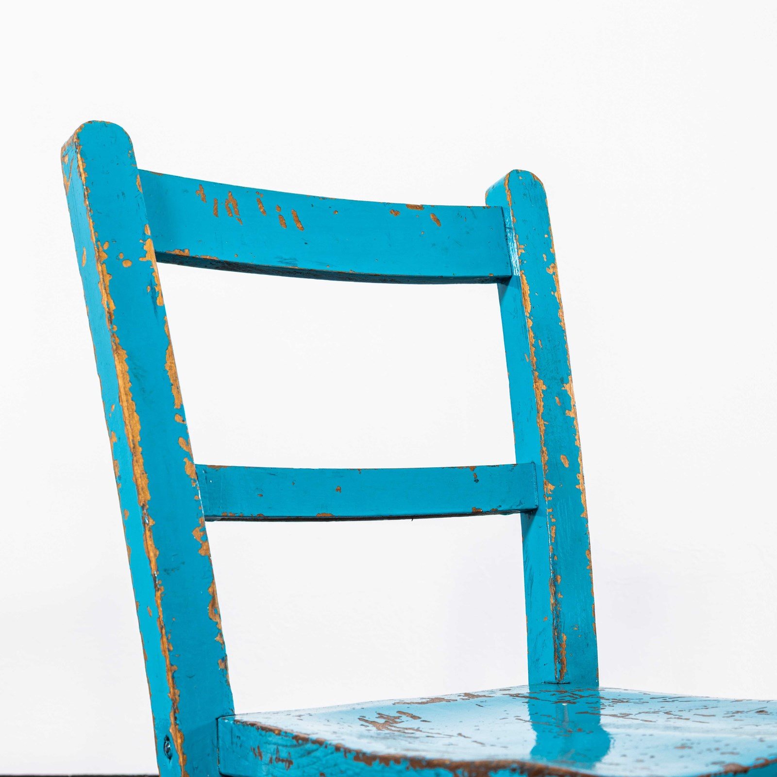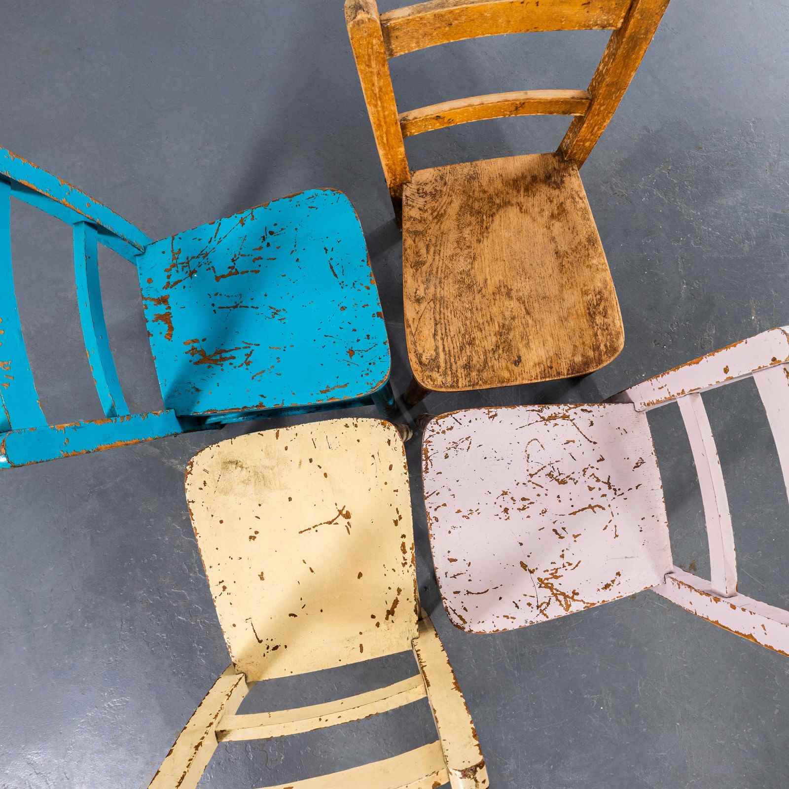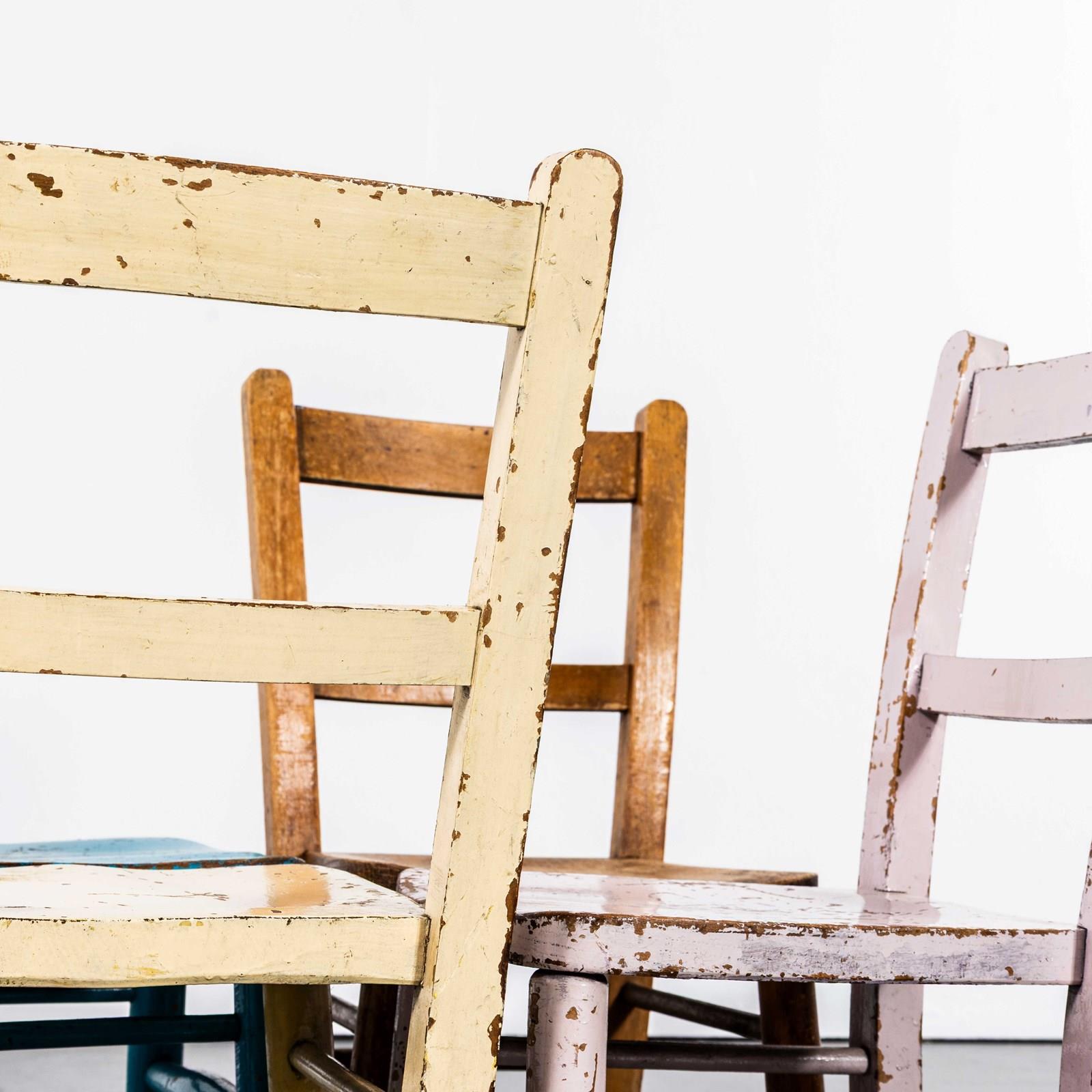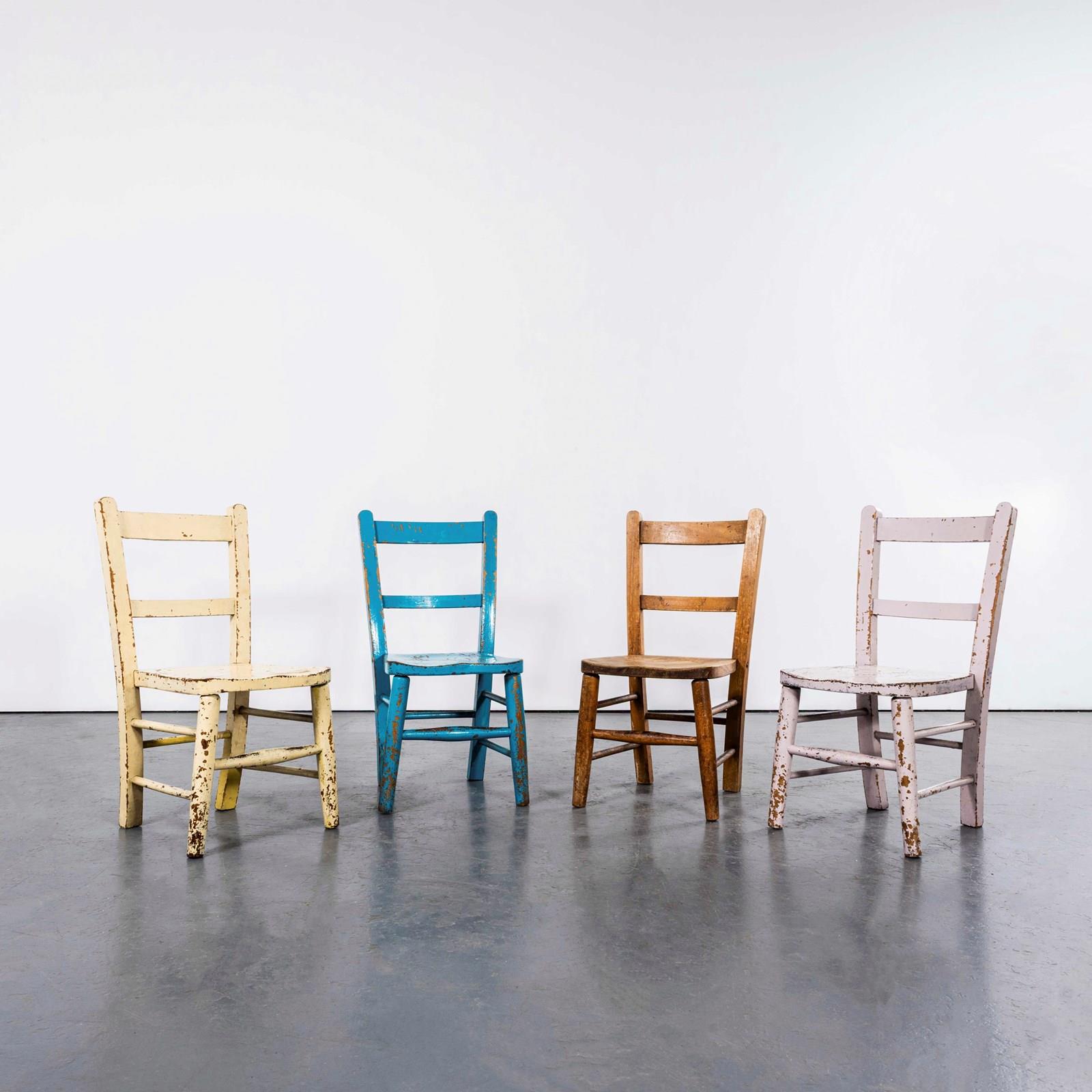 1950'S English Painted Children's Chapel Chairs Mixed Colour - Set Of Four