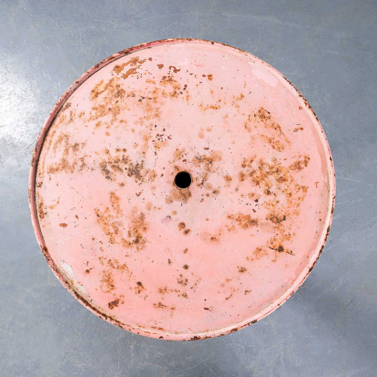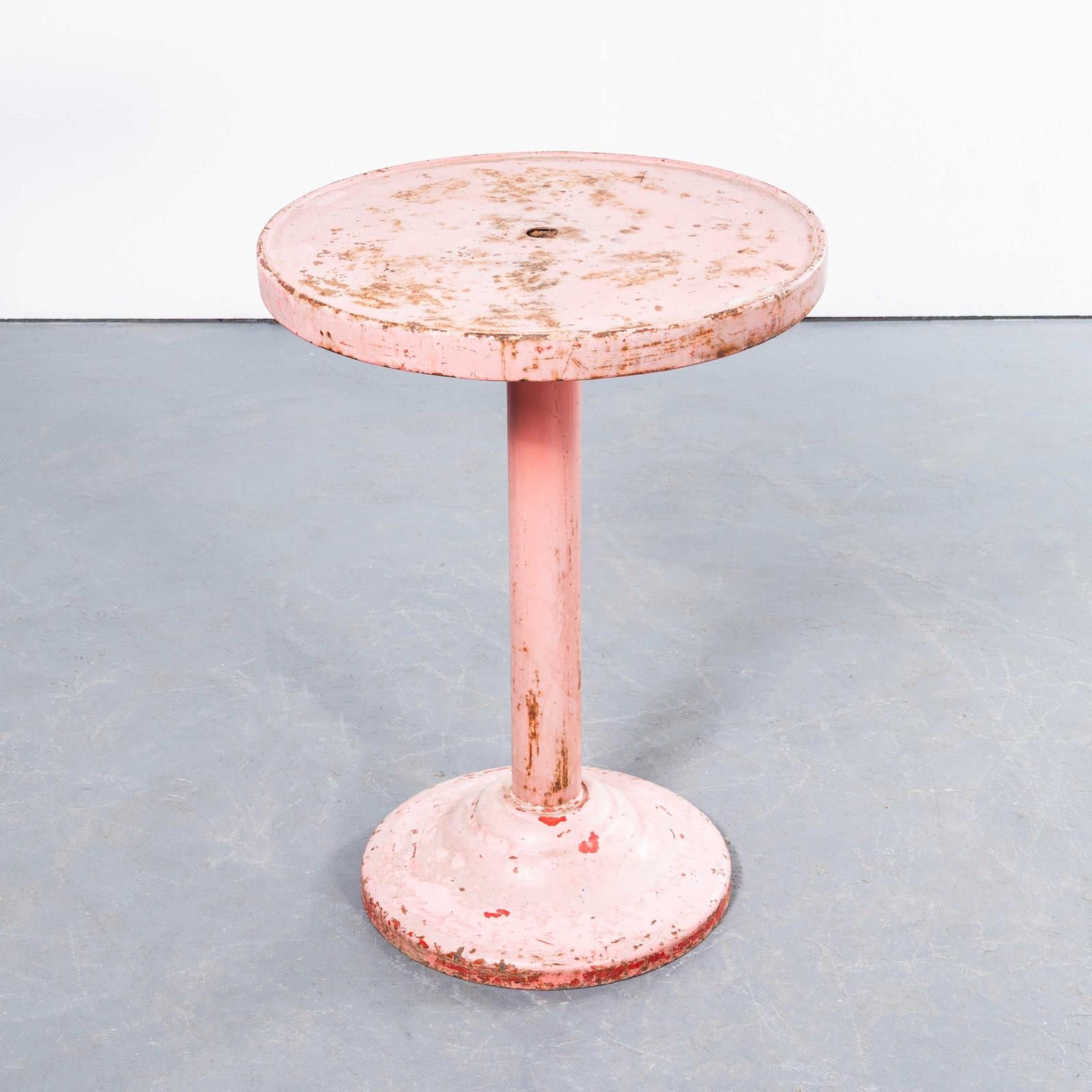 1950'S Faded Red Round Tolix Side Or Dining Table