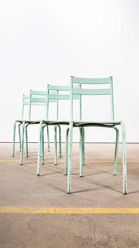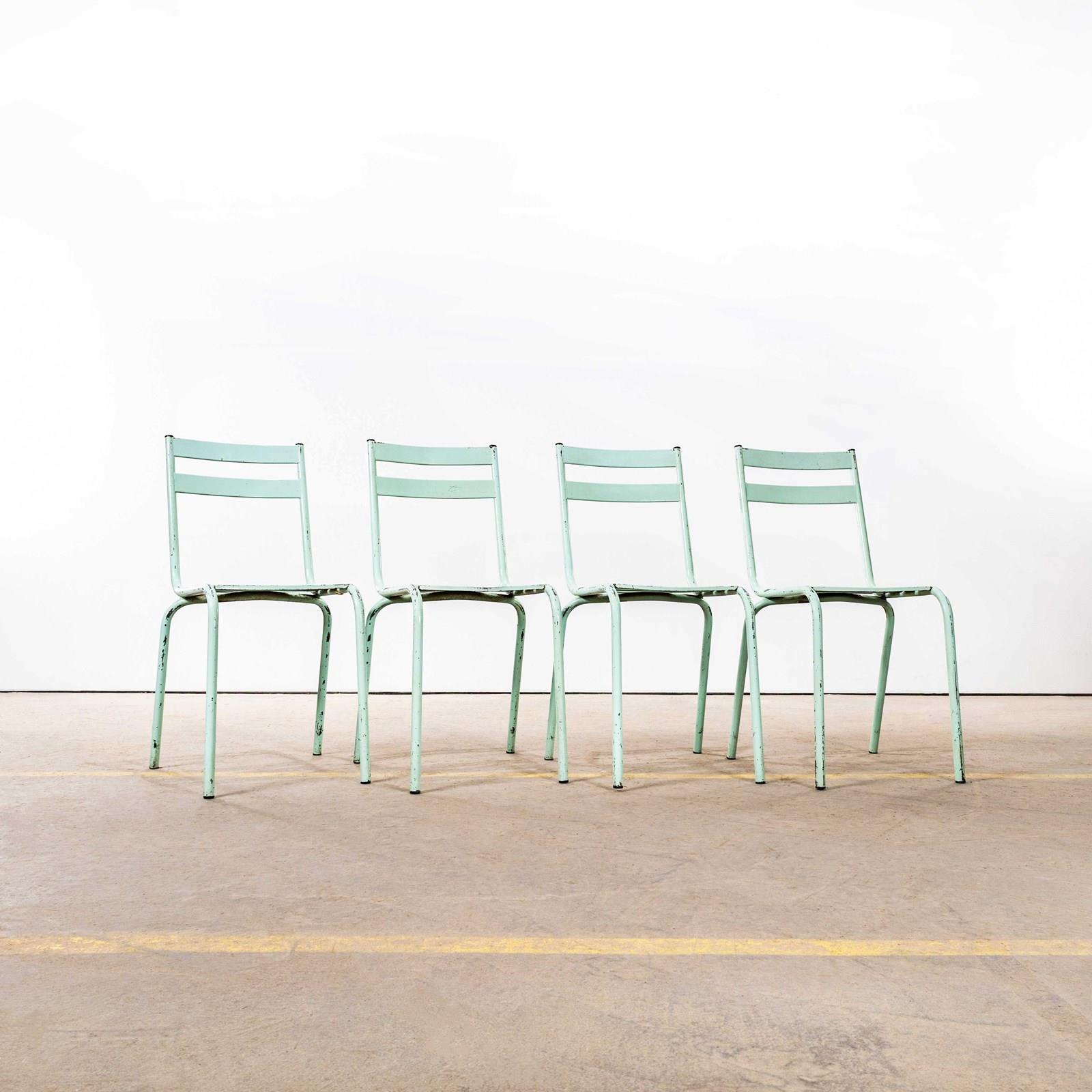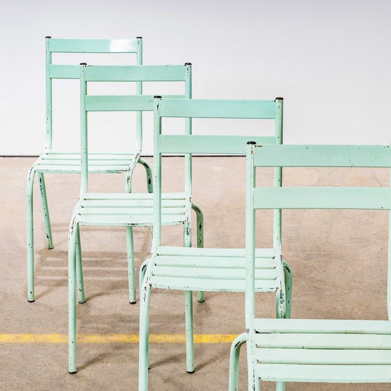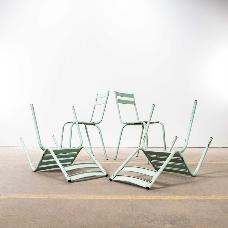 1950'S French Artprog Light Green Metal Stacking Outdoor Chairs
