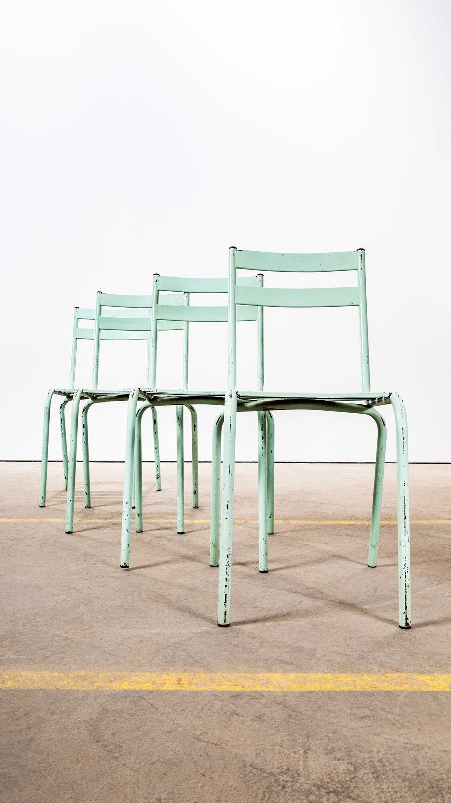 1950’s French ArtProg Light Green Metal Stacking Outdoor Chairs.