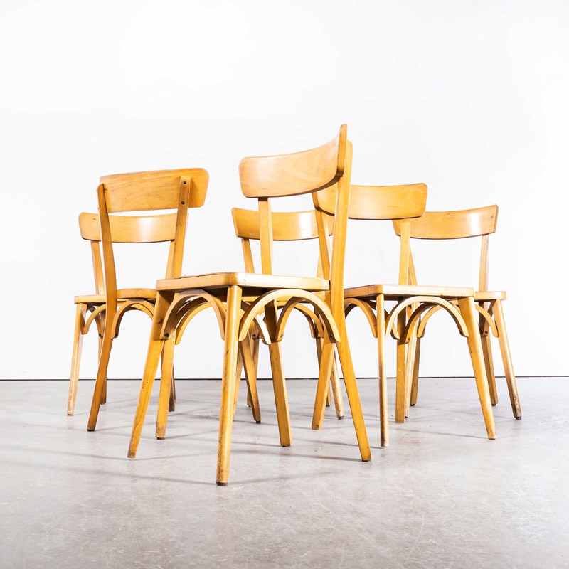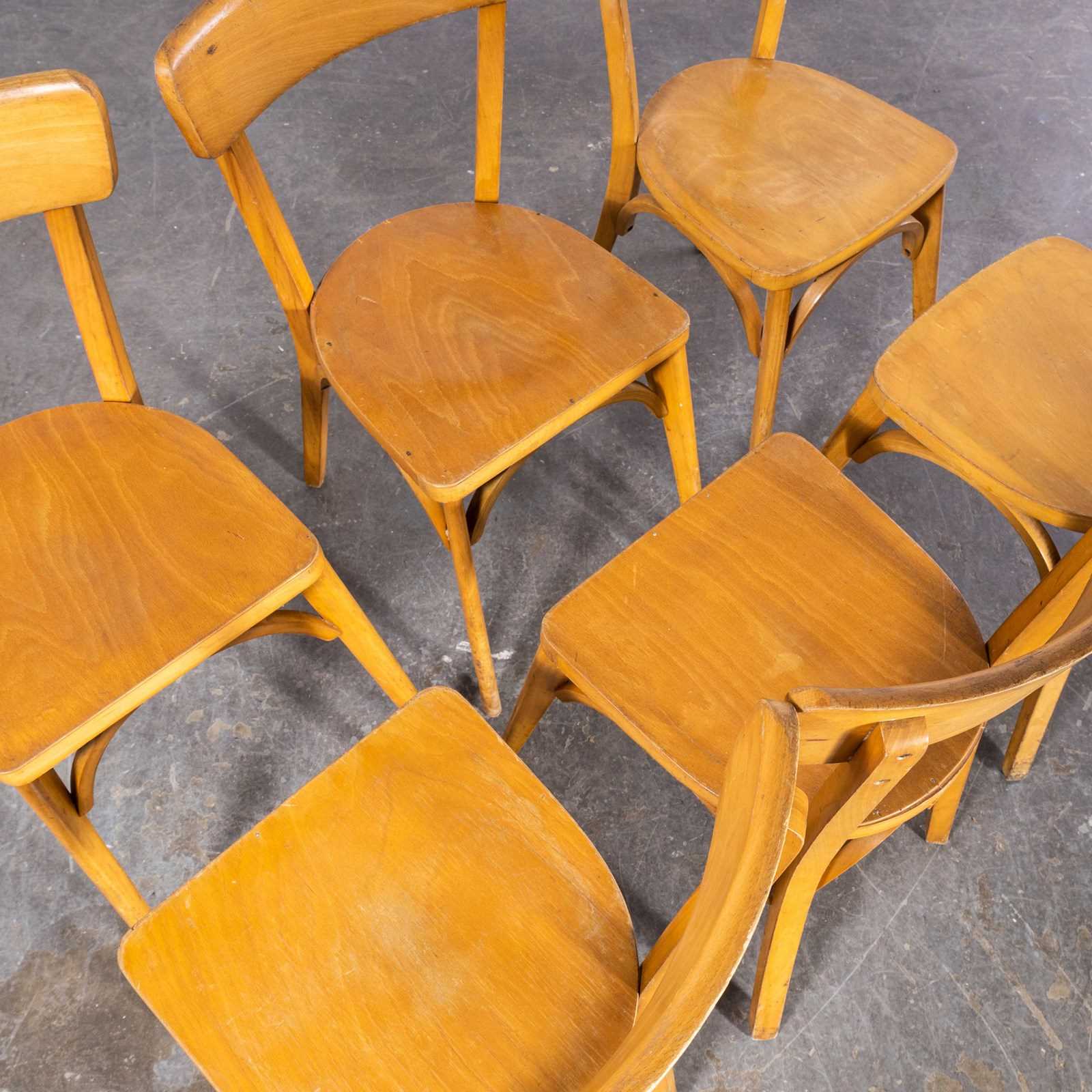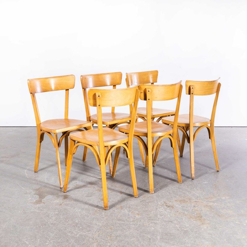 1950'S French Baumann Blonde Beech Bentwood Dining Chairs - Set Of Six