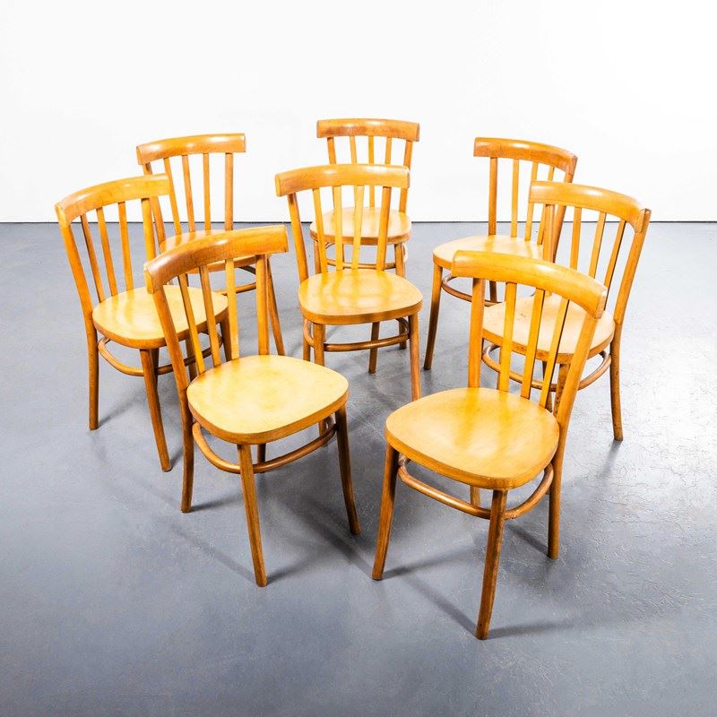 1950’s French Baumann Honey Bistro Dining Chair – Set Of Eight.
