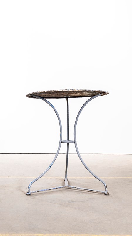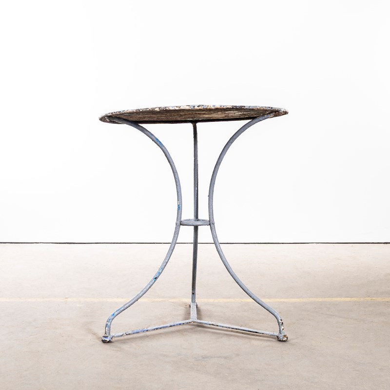 1950’s French Grey Metal Round Outdoor Small Gueridon Table.