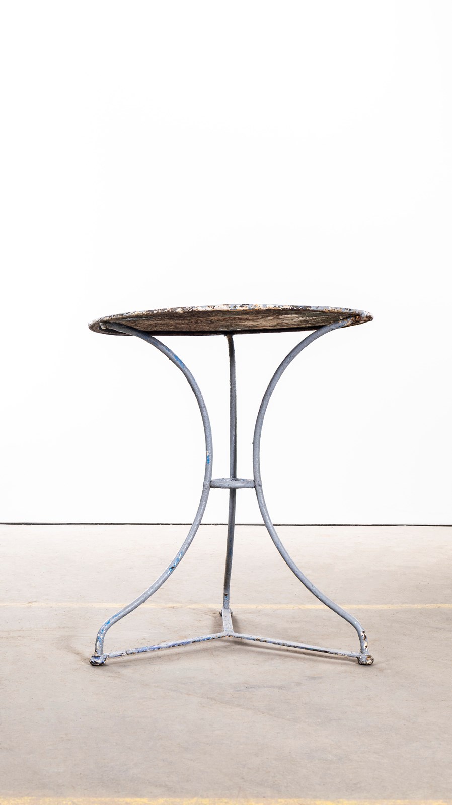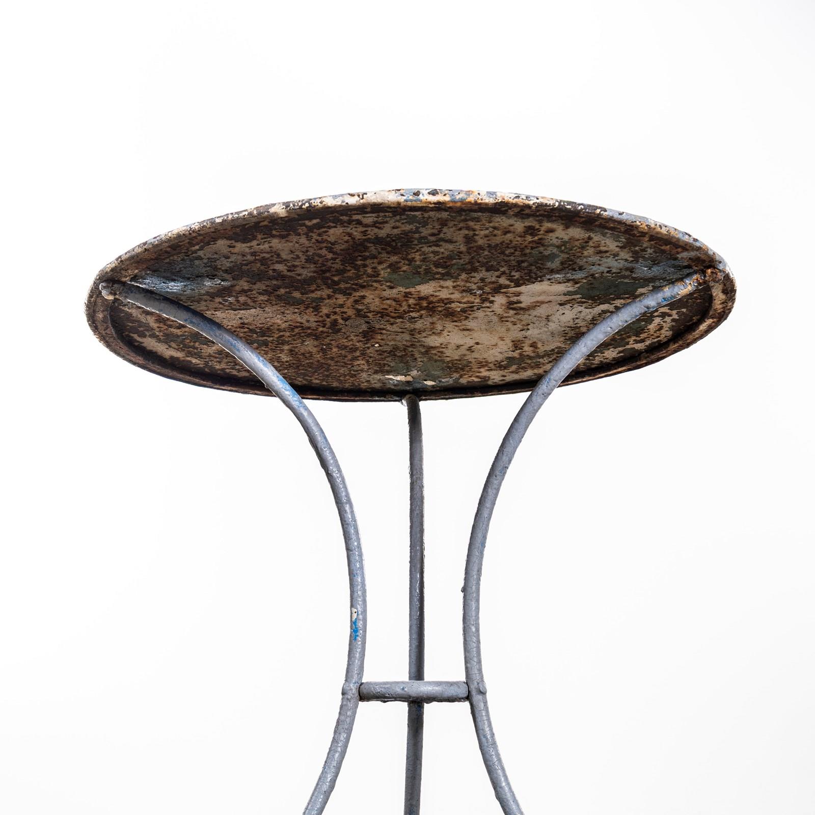 1950'S French Grey Metal Round Outdoor Small Gueridon Table