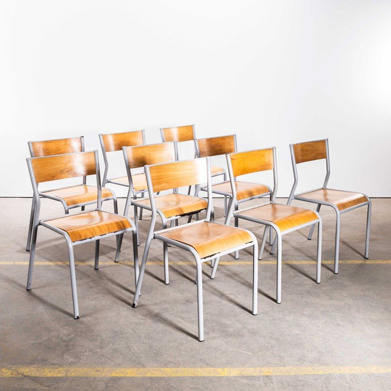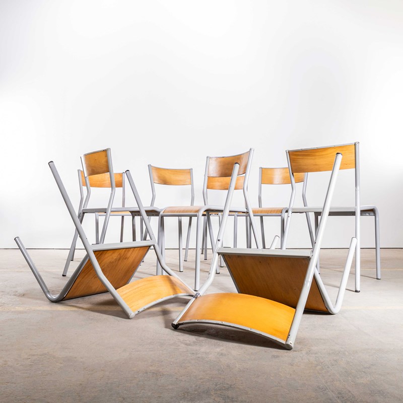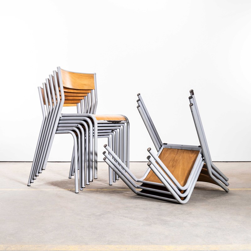 1950’S French Mullca Stacking Dining Chairs – Grey Wide Seat 510 – Set Of Nine