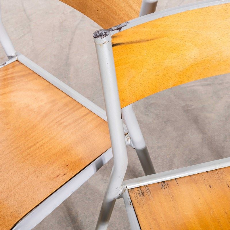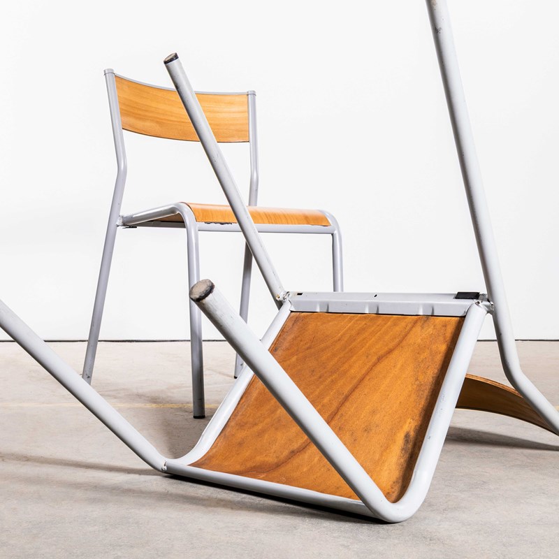 One of our most favourite chairs, in 1947 Robert Muller and Gaston Cavaillon created the company that went on to develop arguably the most famous French school chair. Sadly the company no longer exists but vintage chairs can still be found, beautifully made with a strong tubular frame with birch seats and back inserts. Rumour has it that this model was the redesign of the 511 after the French government felt the 511 needed updating to be more sophisticated. Ours date from the early 1960’s and are in exceptional condition. Super comfortable and stylish. We service and rejuvenate each chair individually before they leave our workshop and we deliver chairs of excellent quality.