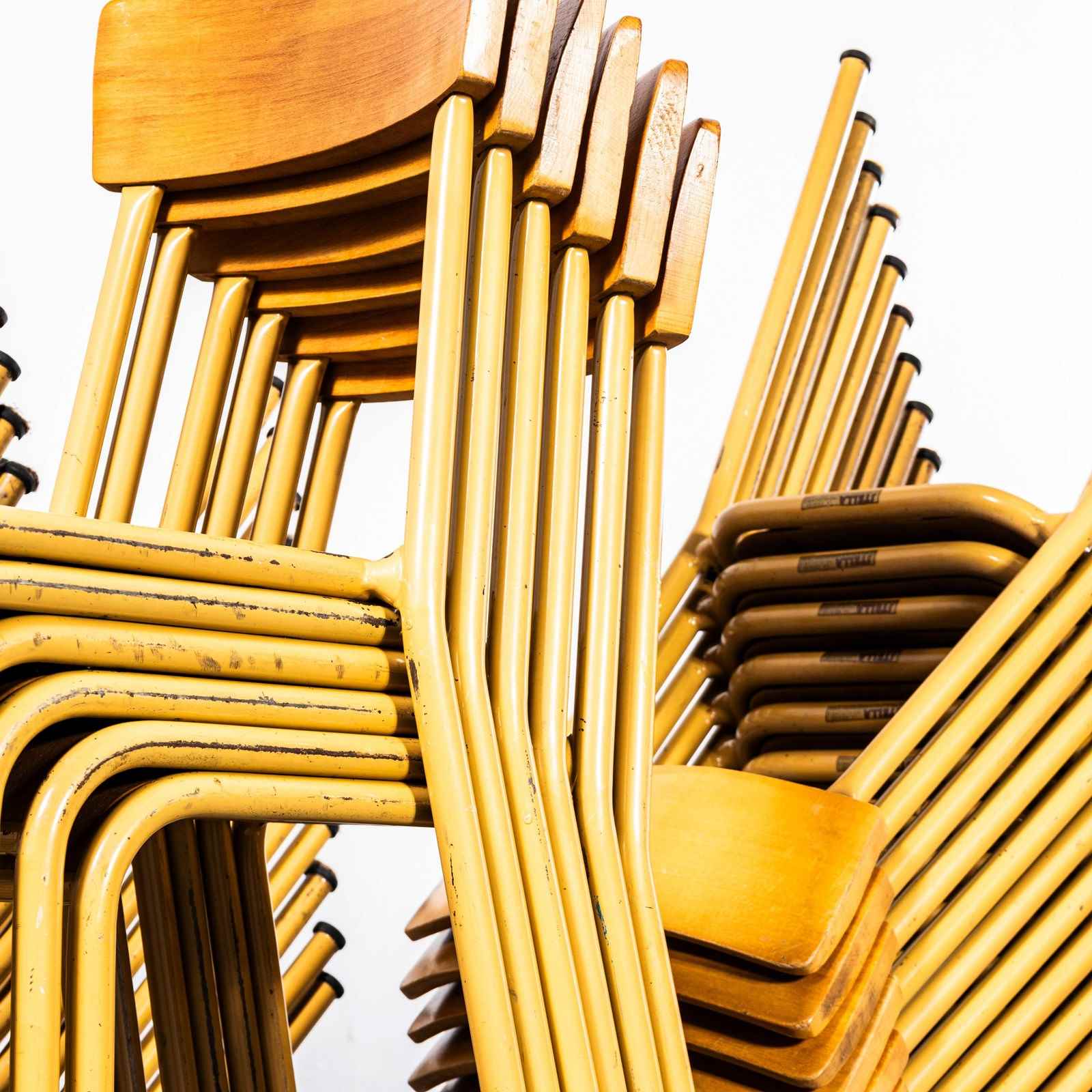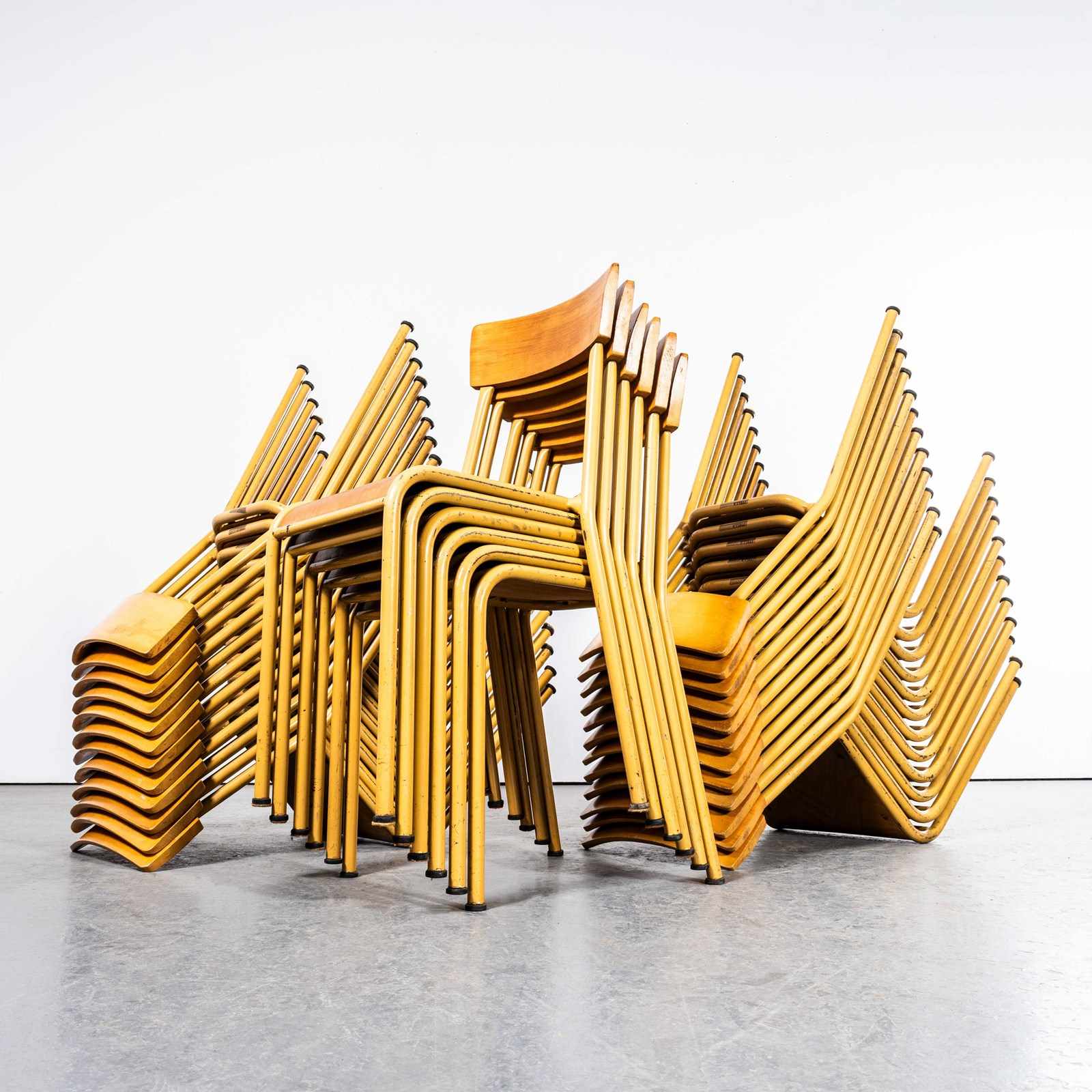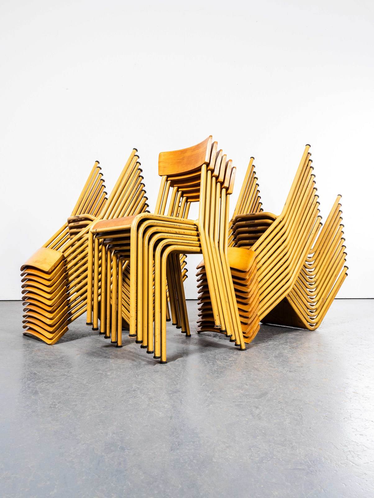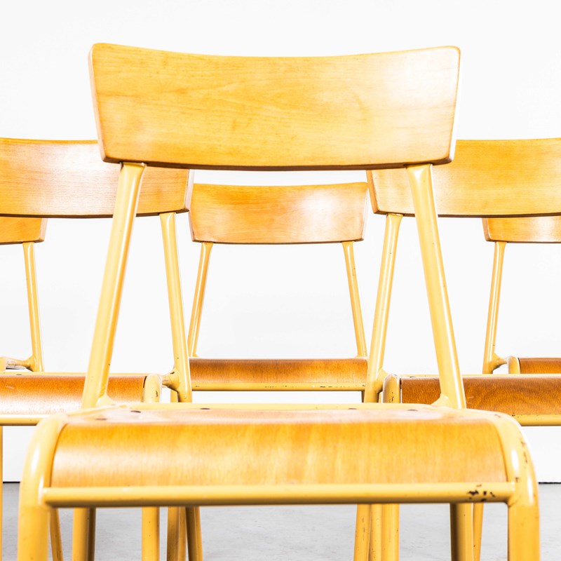 1950’s French Mustard Stella Stacking Dining Chairs.
