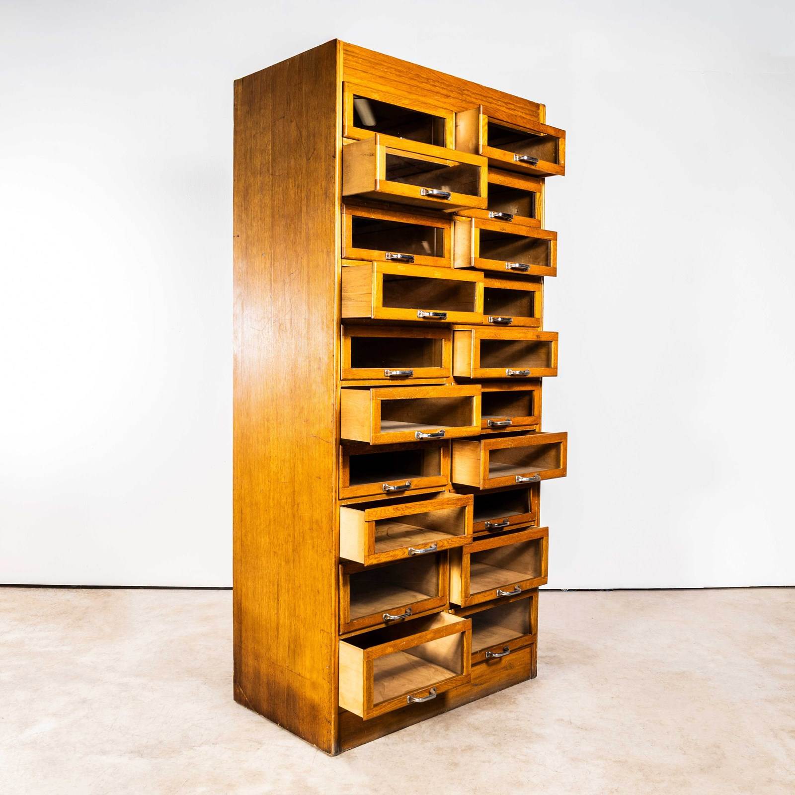 1950’s Glass Fronted Original Haberdashery Storage Unit – Twenty Drawer.