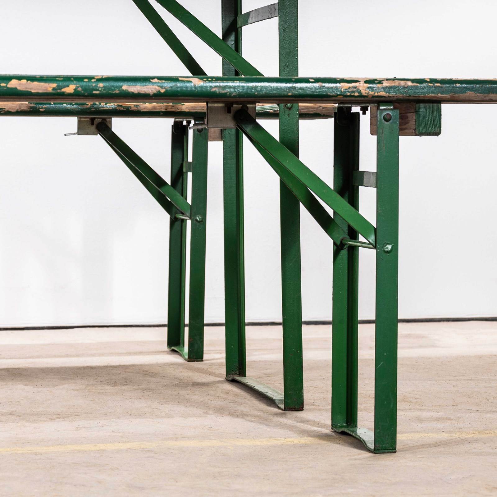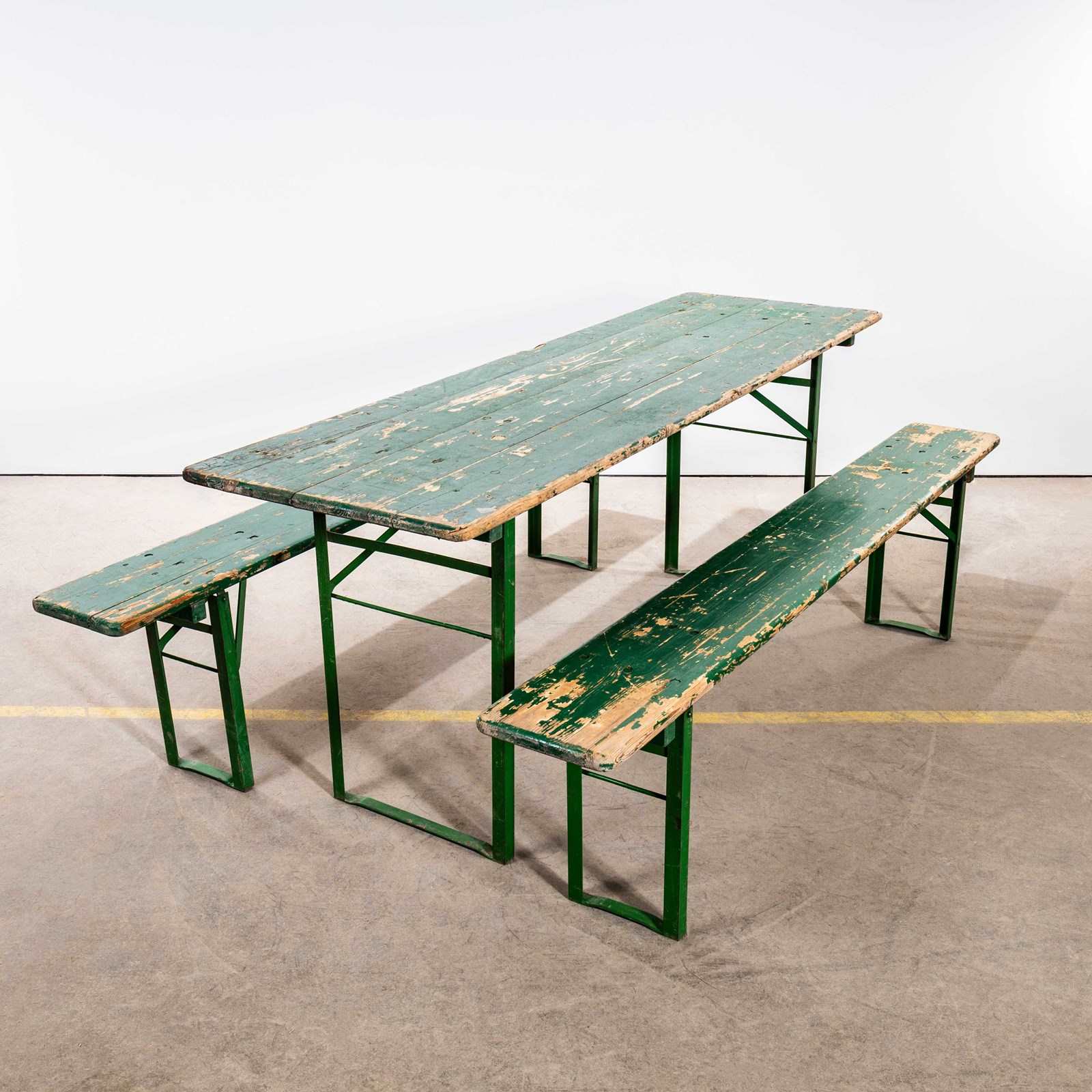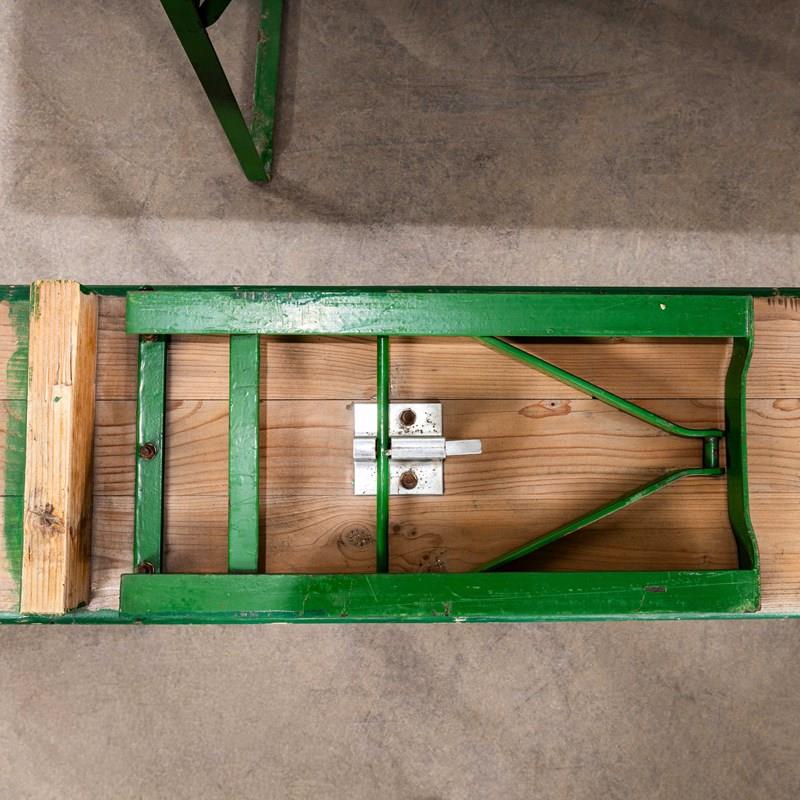 1950'S Green Ex Army Large French Folding Bench & Table Set