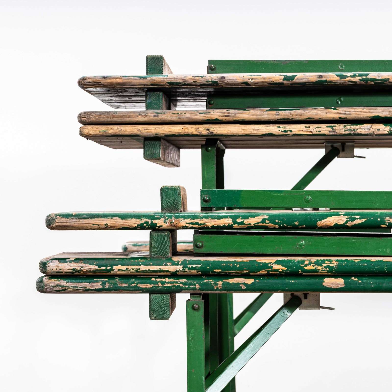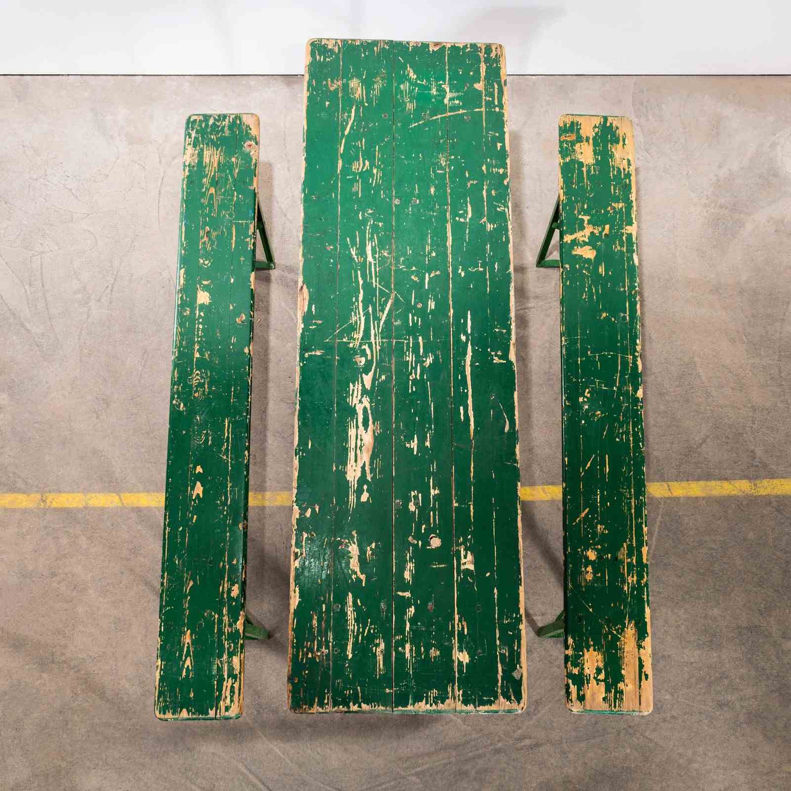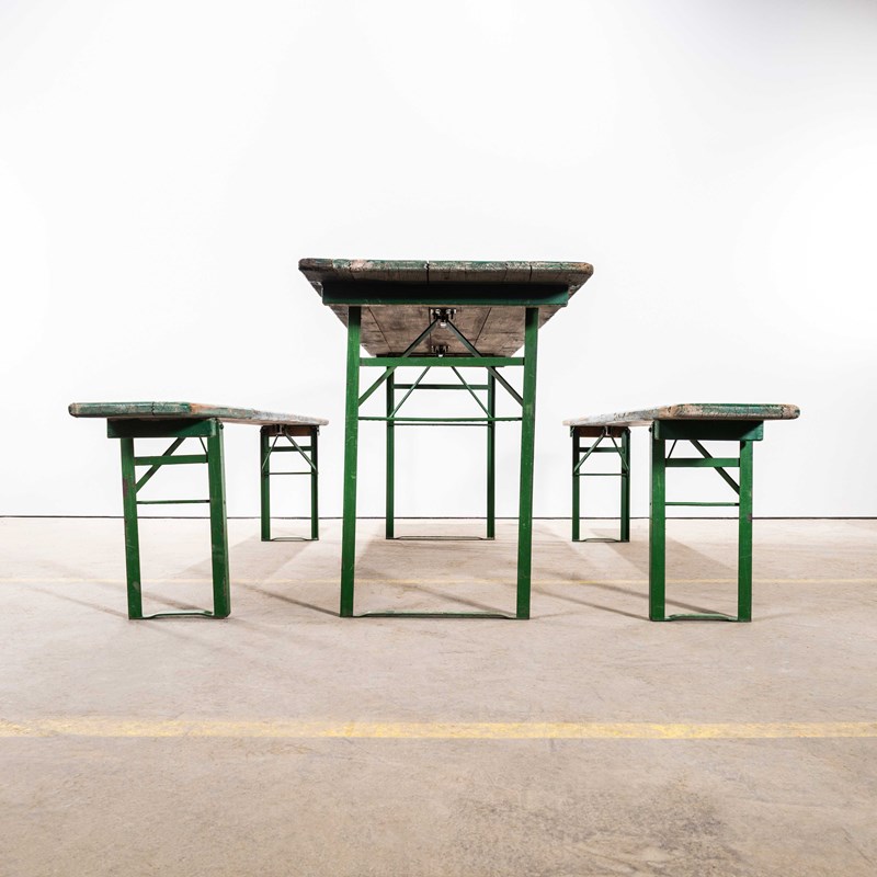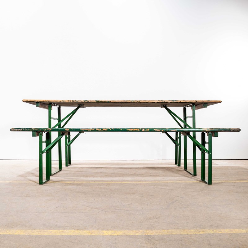 1950'S Green Ex Army Large French Folding Bench & Table Set