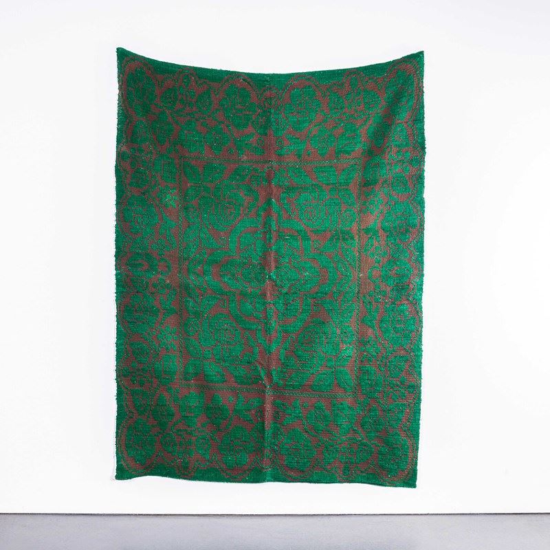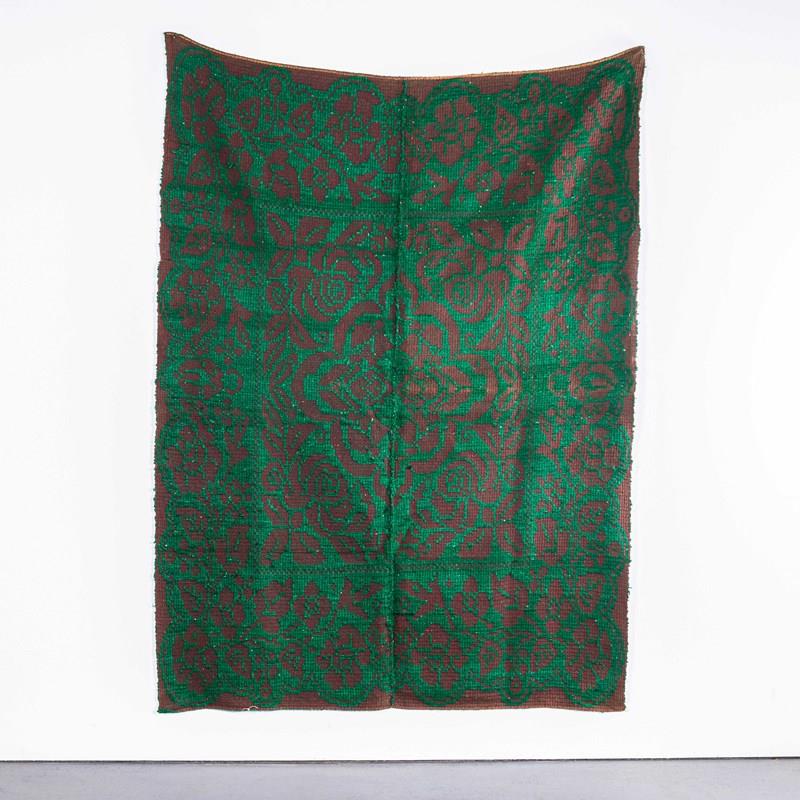1950’s Handmade Green & Brown Folk Hungarian Wool Bedspread.