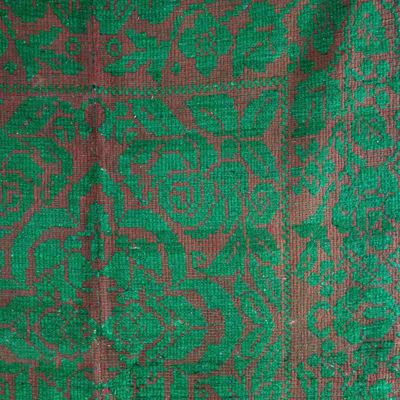 1950'S Handmade Green & Brown Folk Hungarian Wool Bedspread