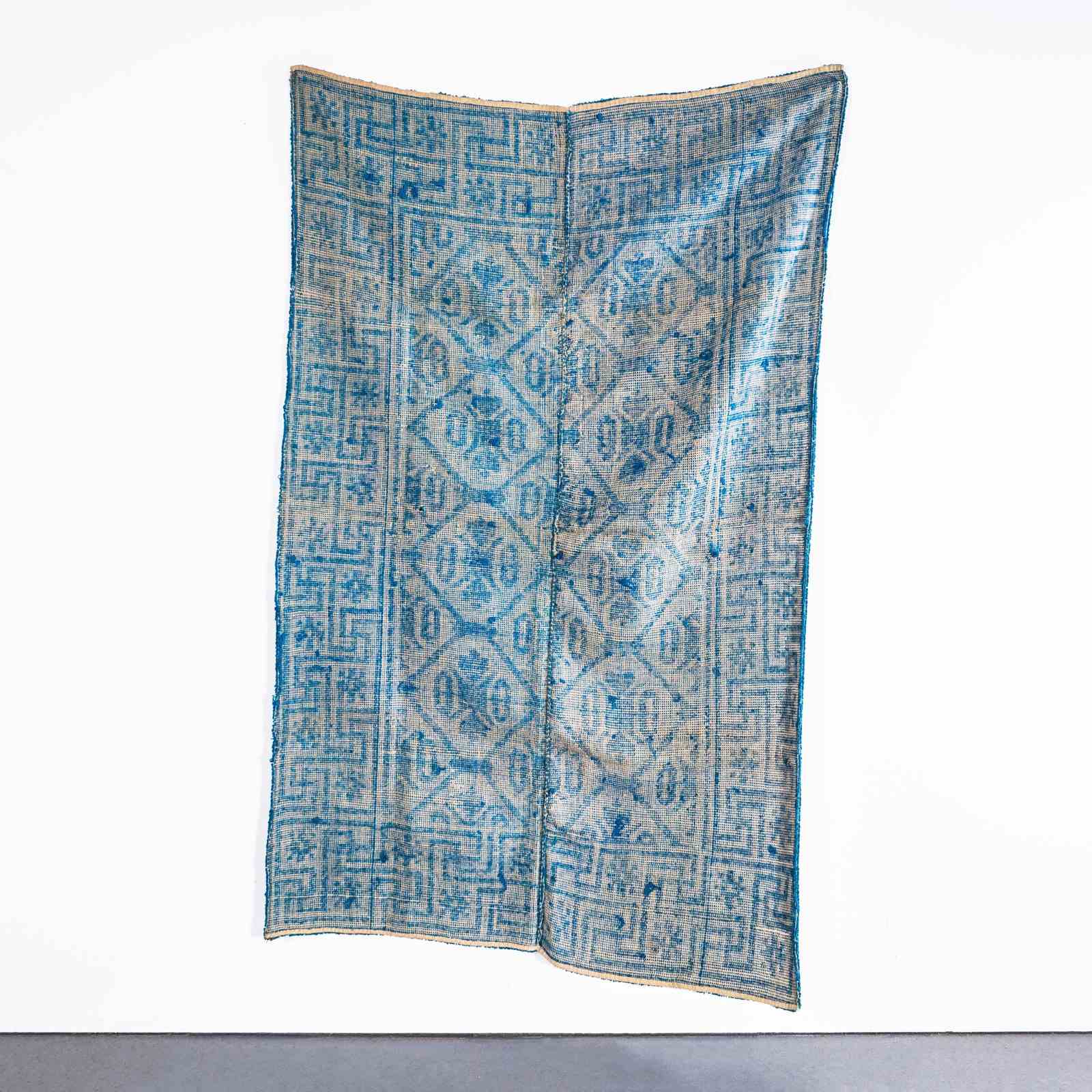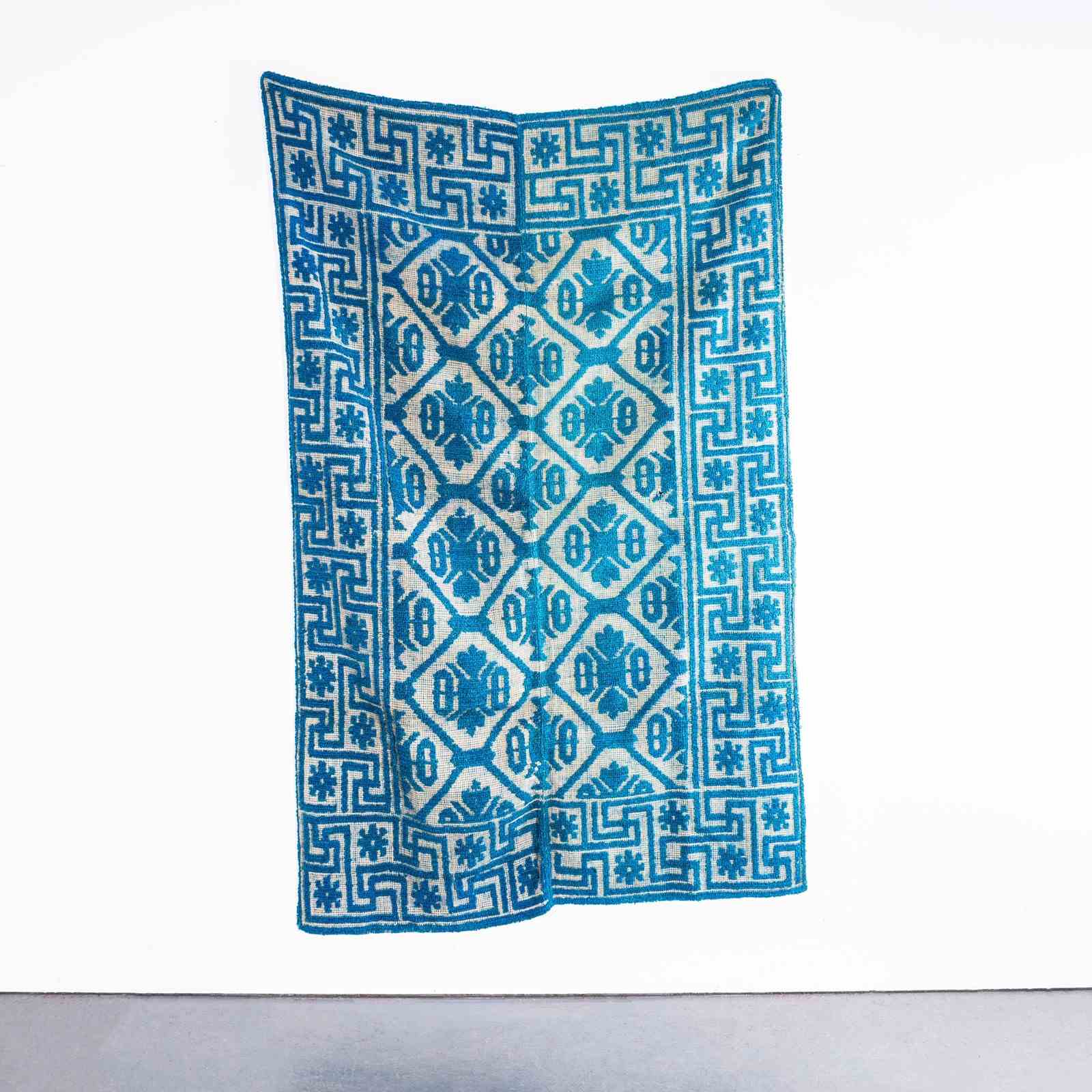 1950’s Handmade Light Blue Folk Hungarian Wool Bedspread.