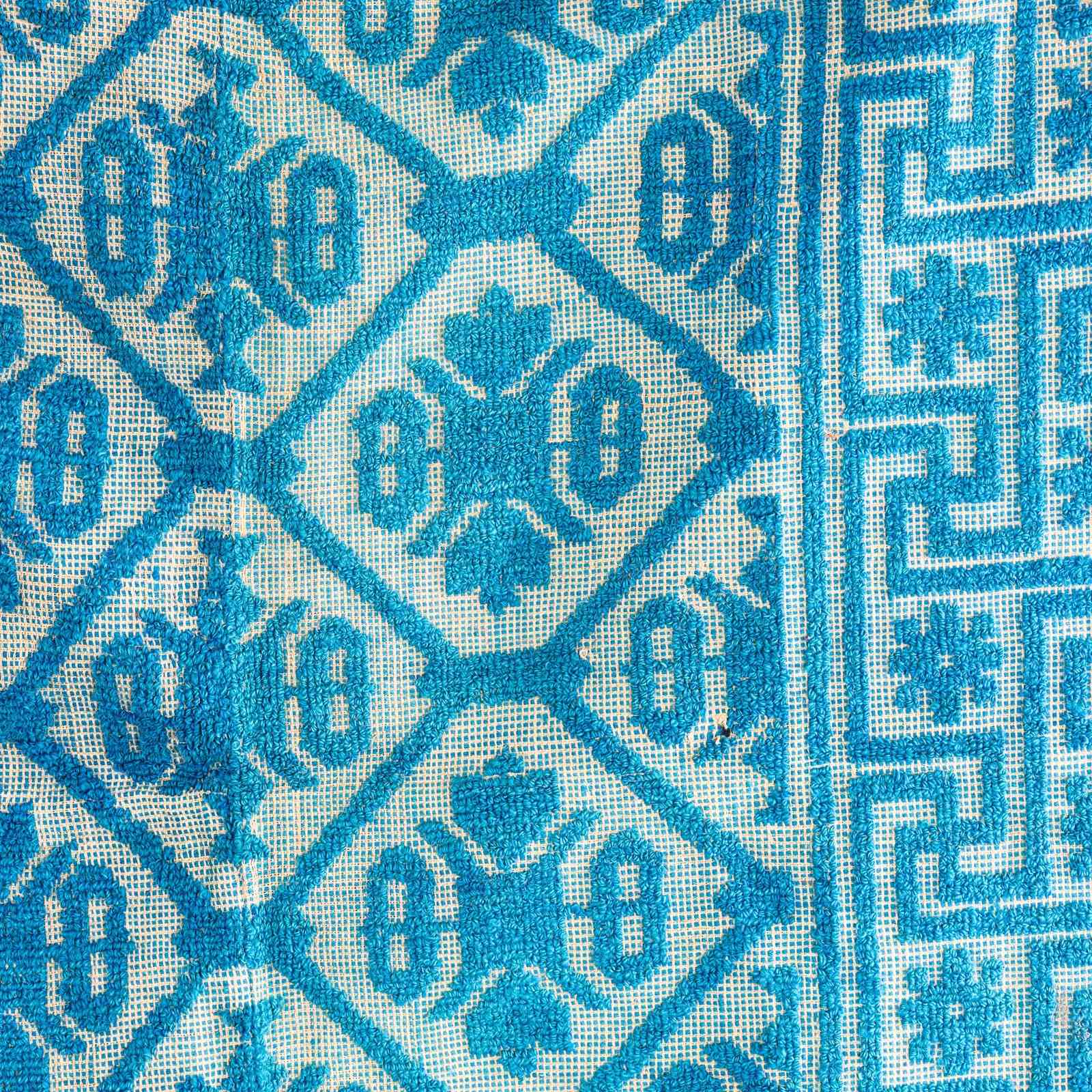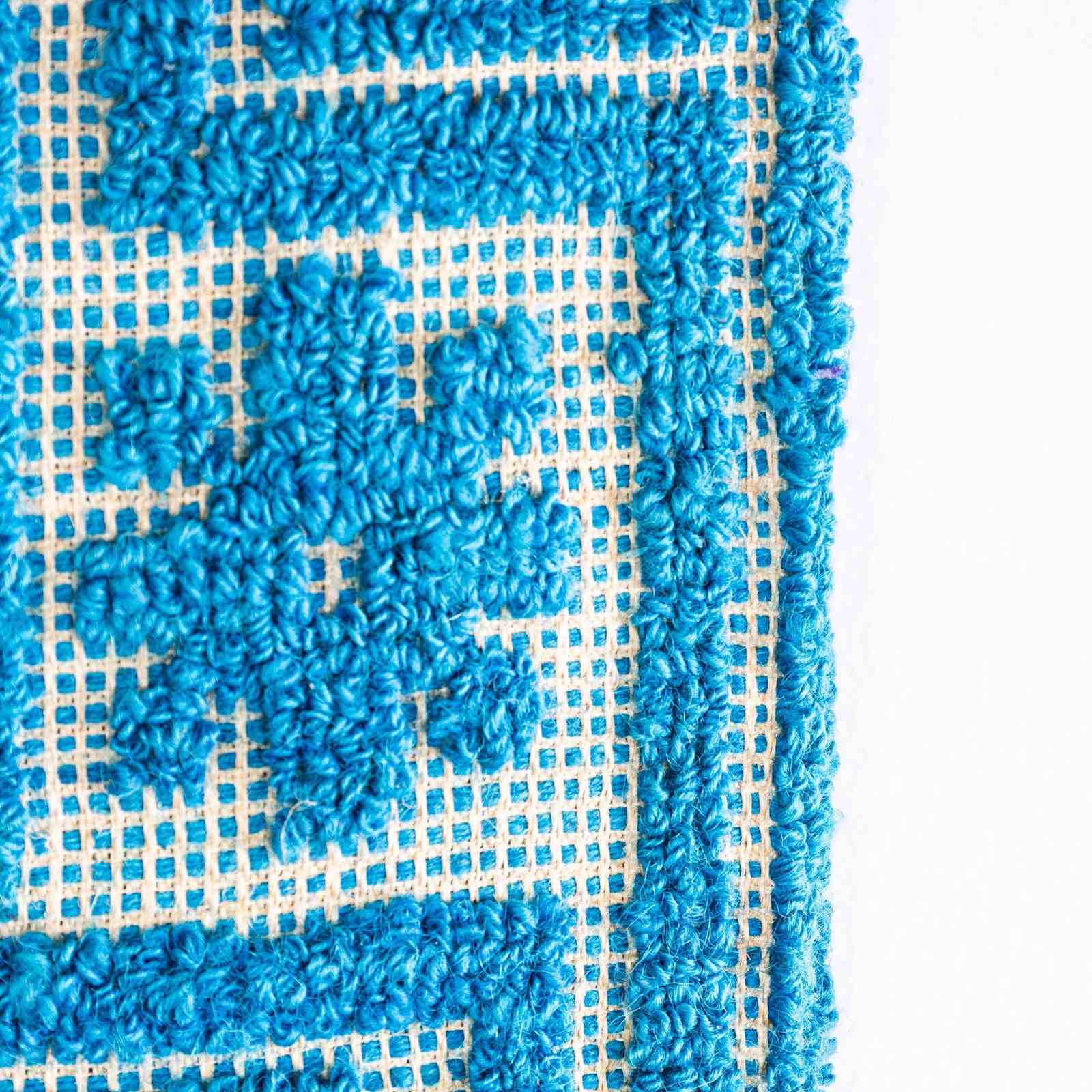 1950'S Handmade Light Blue Folk Hungarian Wool Bedspread