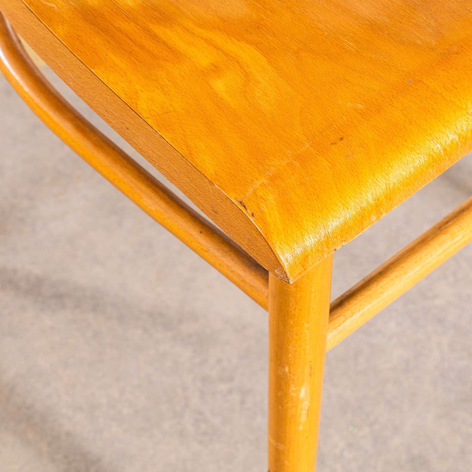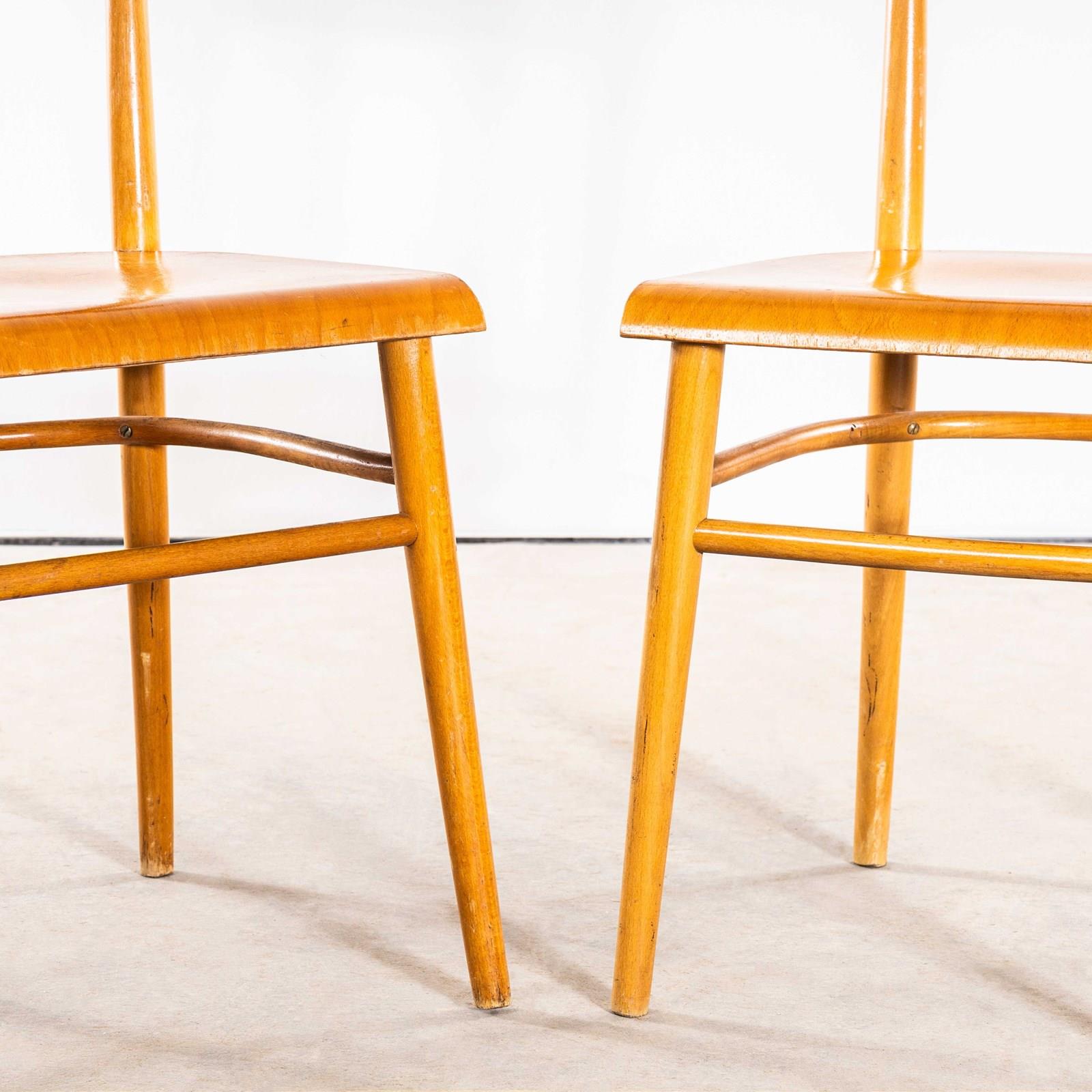 High quality good scale dining chairs produced by the famous Czech firm Ton, still trading today and producing beautiful chairs. After World War II, the Thonet factory in Bystřice pod Hostýnem (Czech Republic) was nationalized by the state in the era of communism in Czechoslovakia. In 1953, the company was officially renamed TON, which is an acronym for Továrny na Ohýbaný Nábytek, meaning “Bentwood Furniture Factory” in Czech. We have gently restored the chairs but kept the original character and patina which is what this chair is all about. A strong sturdy chair of good scale and contemporary design. We service each chair individually before it leaves our workshop and we deliver chairs of excellent quality.
