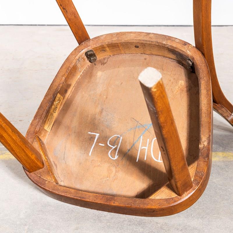 Produced by the famous Czech firm Ton, still trading today and producing beautiful chairs. We have gently restored the frame but kept the original character and patina which is what this chair is all about. A strong sturdy chair of good scale with comfortable deep crescent shaped backs. We service each chair individually before it leaves our workshop and we deliver chairs of excellent quality. Seat Height: 46cm.