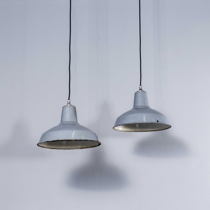 1950’S Industrial Benjamin Enamelled Grey Pendant Lamps (Model 3) - 14 Inch