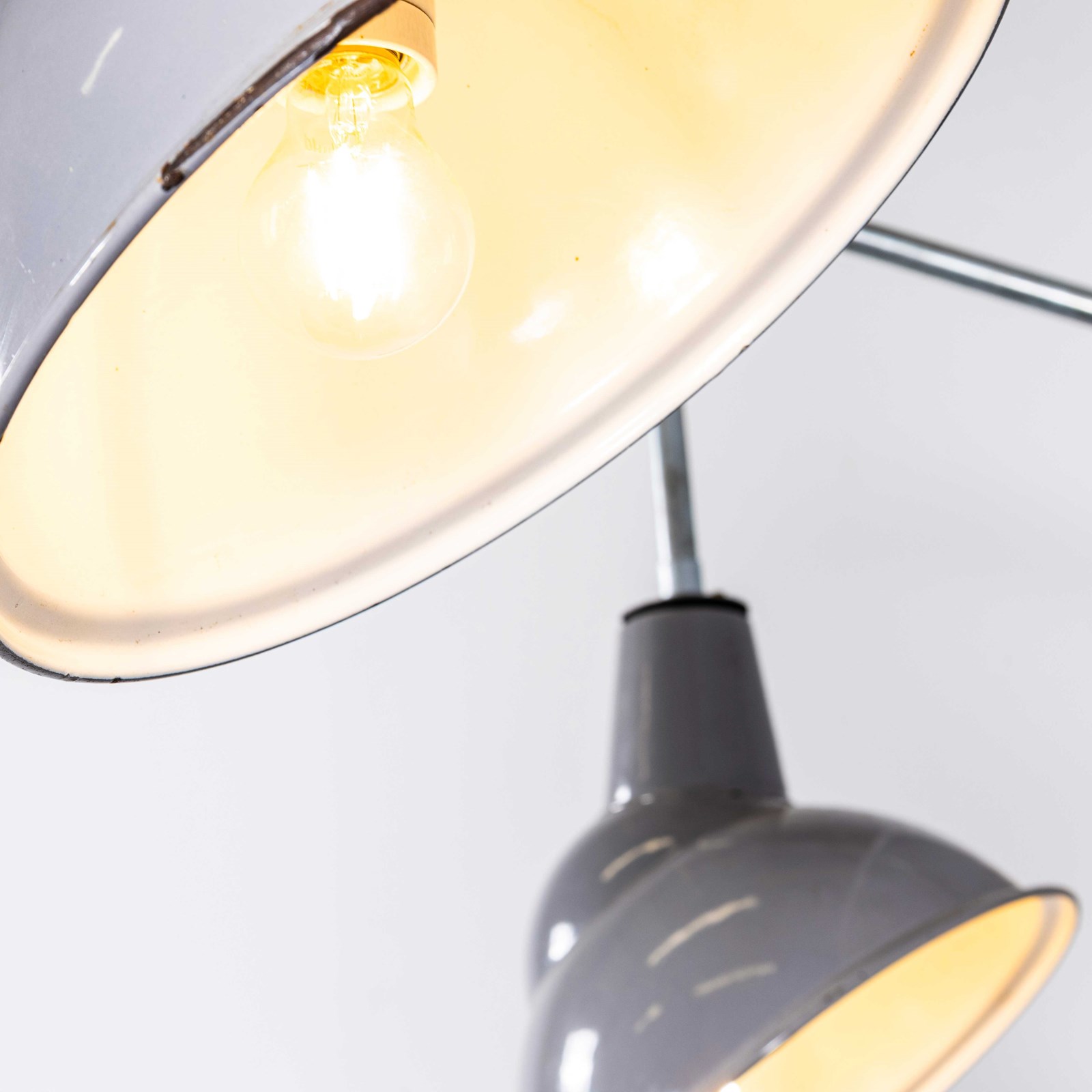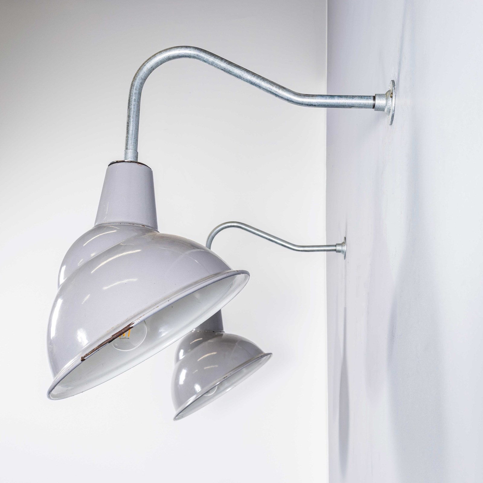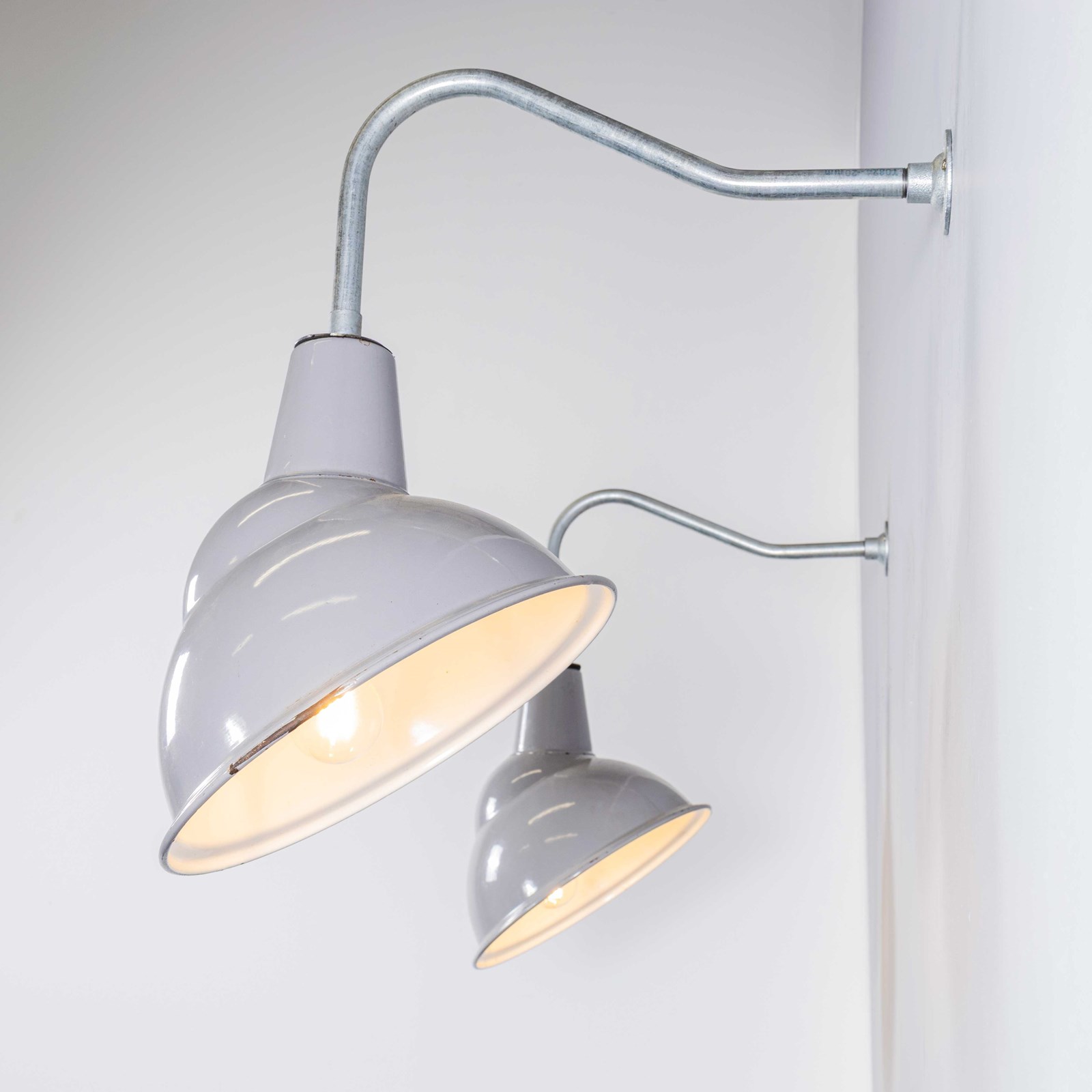 1950'S Industrial Grey Benjamin Crysteel Enamelled Parabolic Lamps - Pair