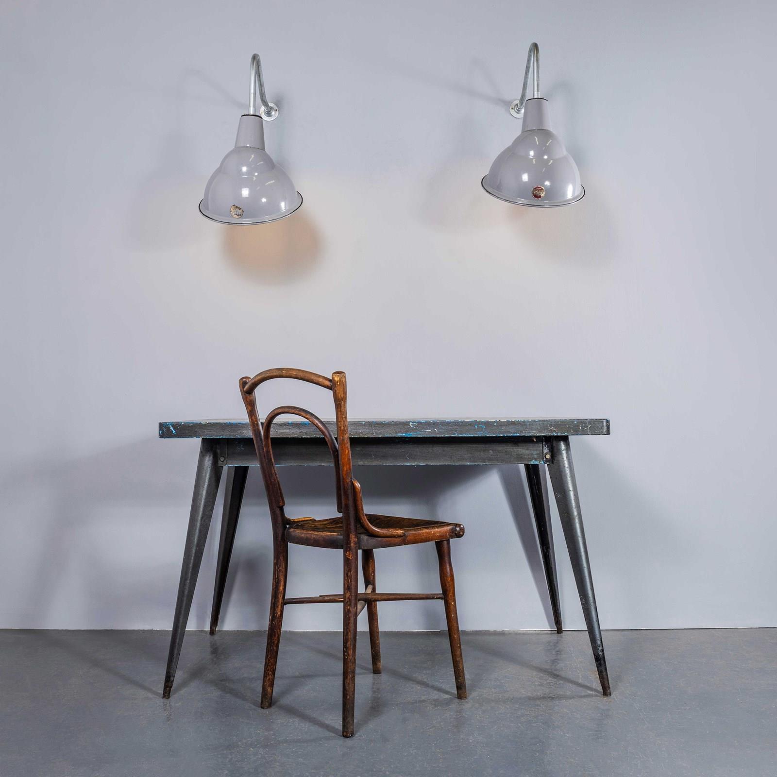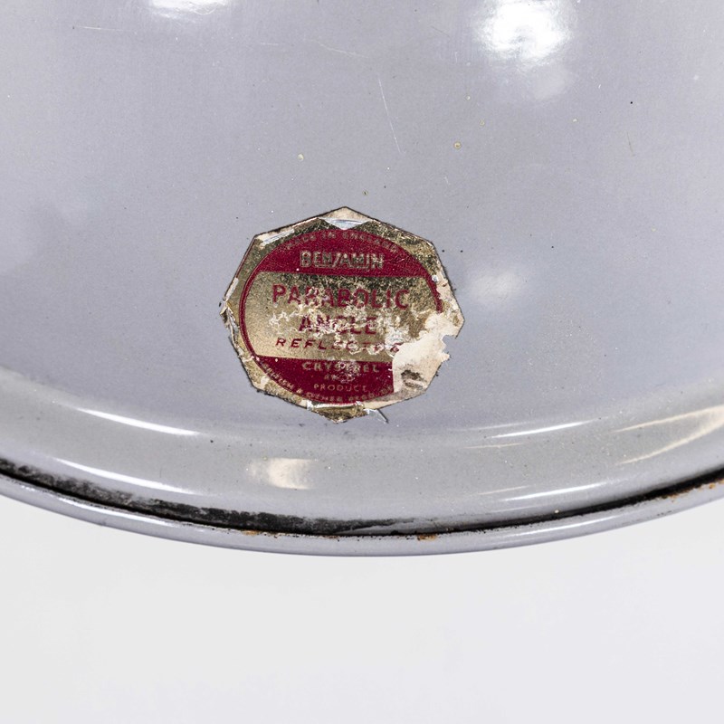 1950’s Industrial Grey Benjamin Crysteel Enamelled Parabolic Lamps – Pair.