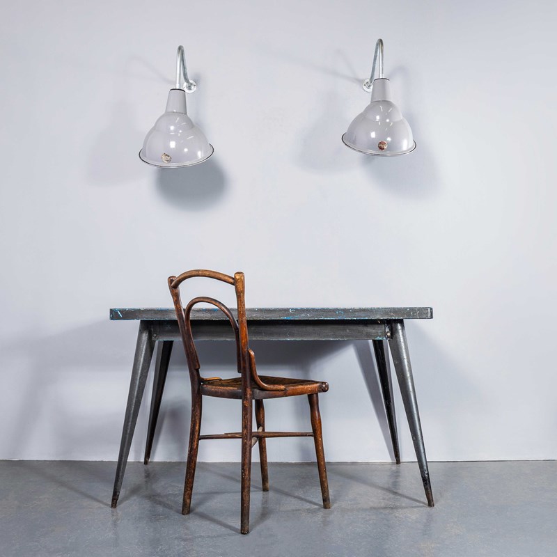 Listing is for the pair of lamps. Benjamin was arguably the market leader in industrial lighting in the 1930’s through to 1960’s. Their main market was providing tough enamelled lamps to large factories. The lamps were covered in paint, grease and dirt which was removed to reveal lamps in exceptional original condition. Each lamp has been cleaned and restored and all electrical components have been removed and replaced with modern European CE standard components to BS EN 60598. Each lamp is individually tested and labelled to BS EN 60598. INCLUDED: Each lamp comes completely wired and ready to install. The lamp is fitted with a standard E27 threaded lamp holder for which a wide range of modern and vintage style filament bulbs are widely available. We do not currently sell bulbs and recommend LED bulbs 6W maximum. We are specialists in refurbishment of vintage lighting, please contact us with any questions regarding purchase or installation.