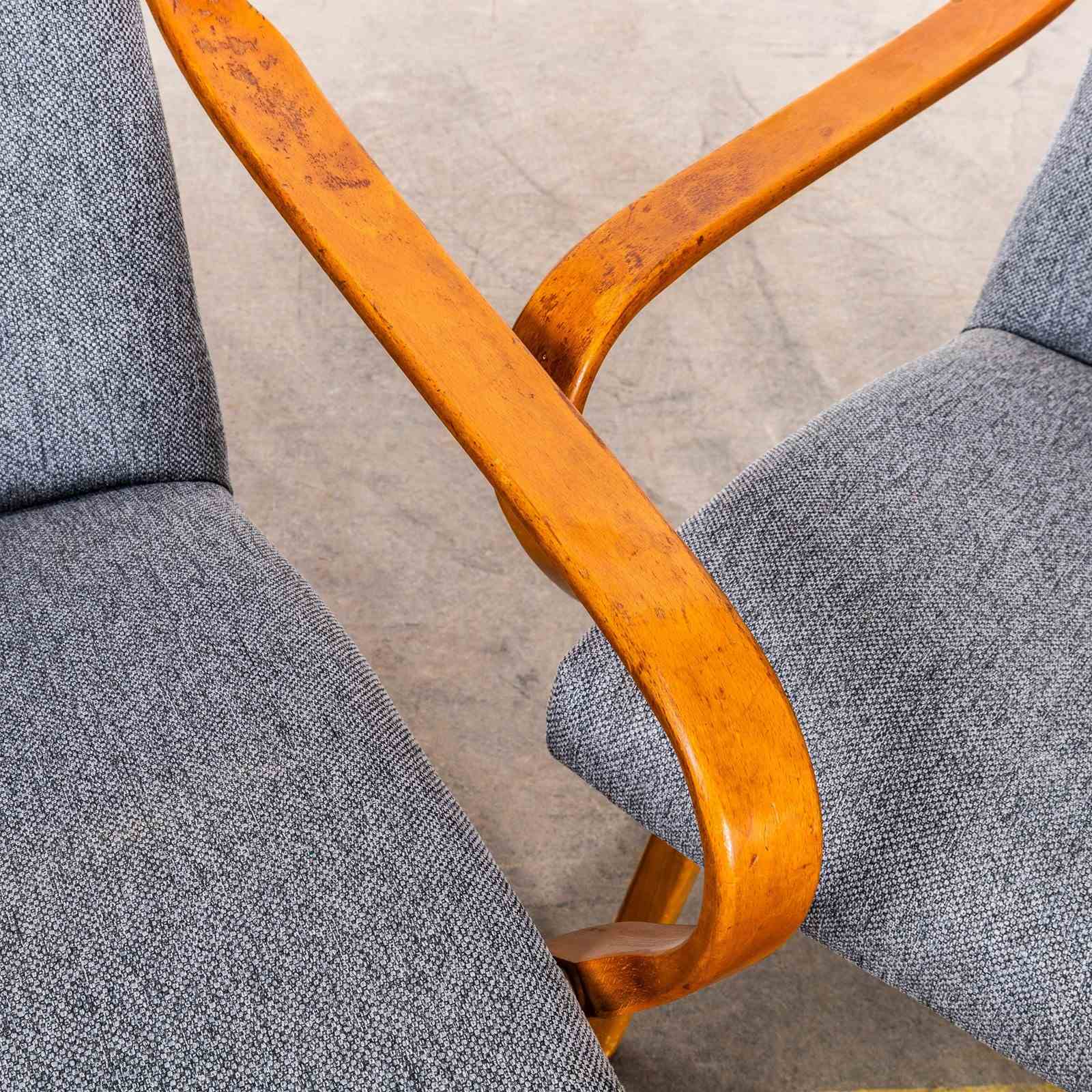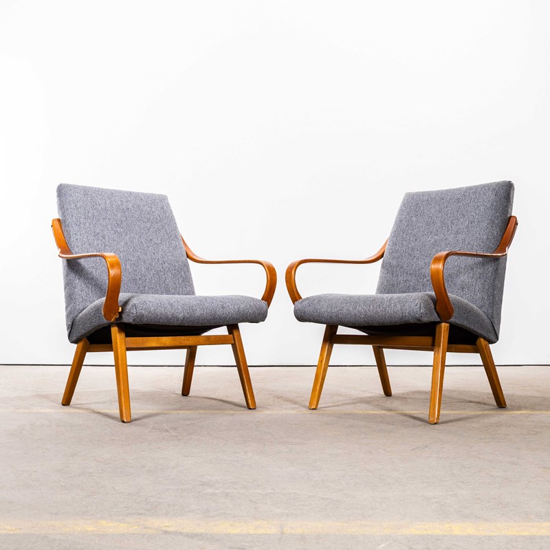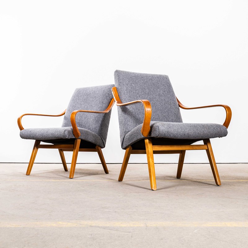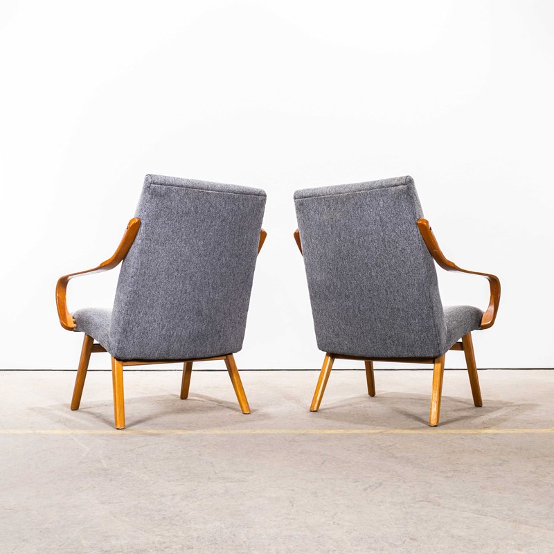 1950’s Jaroslav Šmídek Cotton Linen Grey Marl Upholstered Armchairs.