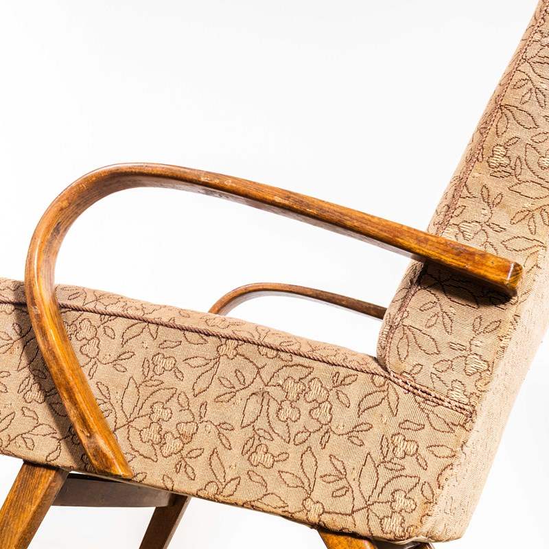 Sourced direct in the Czech republic this is one of Šmídek’s most elegant designs. We carefully select very original armchairs ensuring the fabrics and upholstery are in as good as condition as we can find. The frame is beech throughout and the arms have been cleaned and waxed but retain their original character. This model has the rare and higher sit sprung seat. The upholstery is completely original and has been deep steam cleaned by our workshop team. Seat Height: 44cm