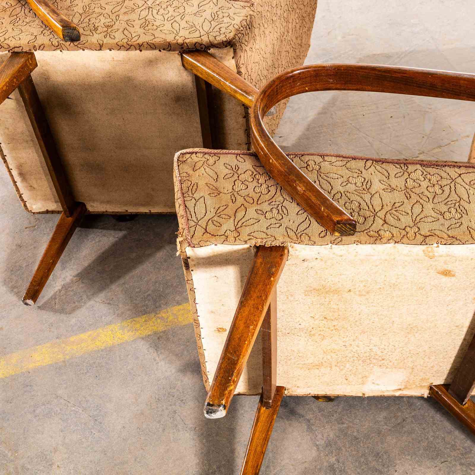 1950’s Jaroslav Šmídek Original Armchairs In A Botanic Geometric Fabric.