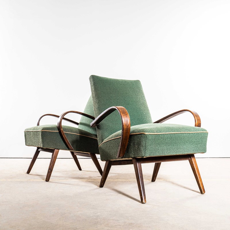 1950’s Jaroslav Šmídek Original Armchairs In A Forest Jacquard – Sprung Seat.